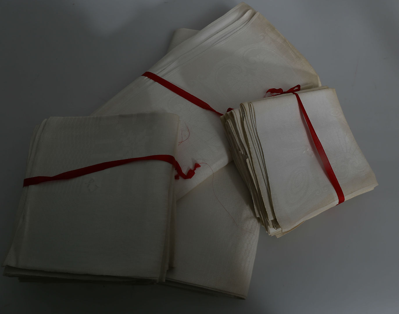 374973. DUG OG SERVIETTER, hør, 26 stk., 1900-tallet.