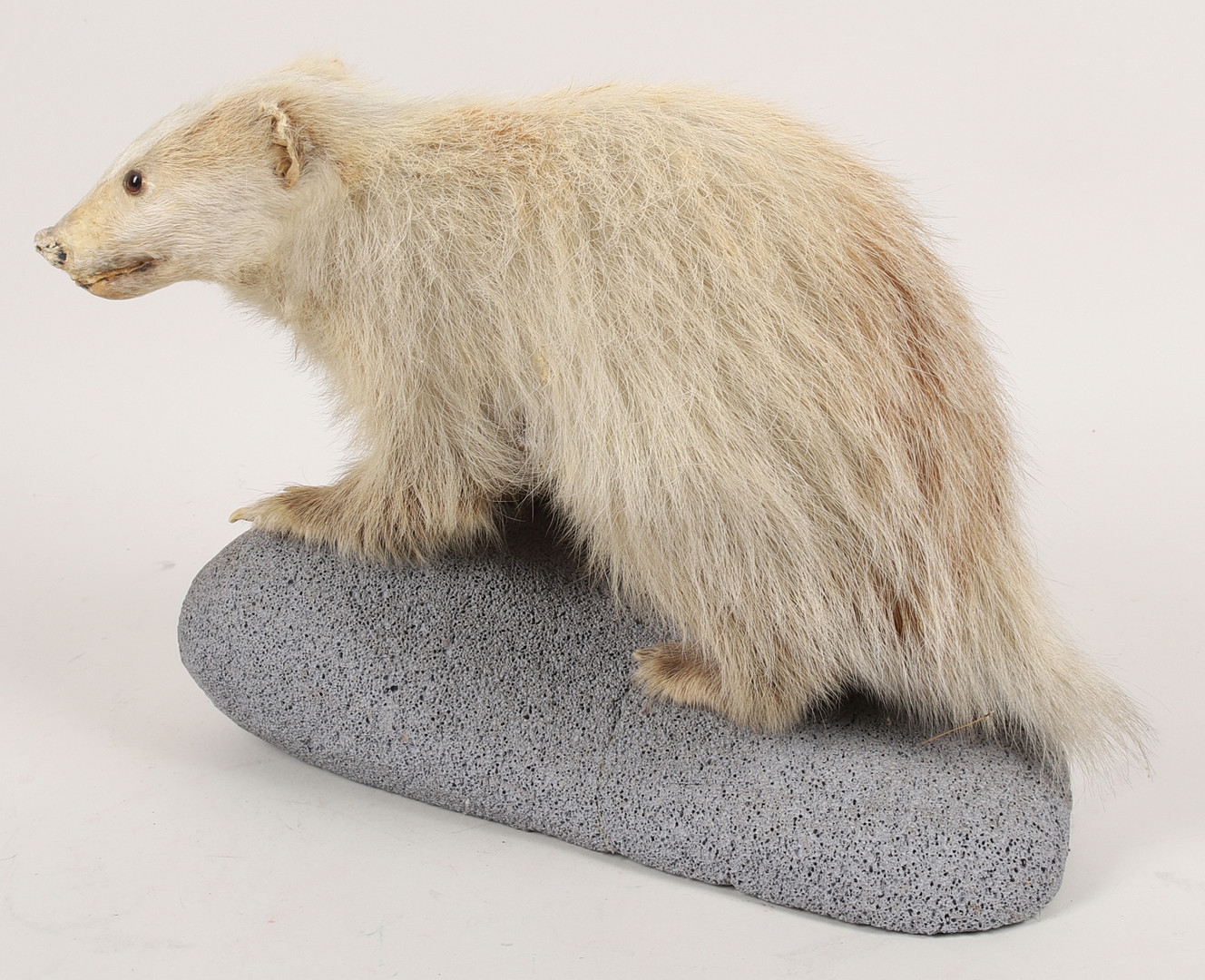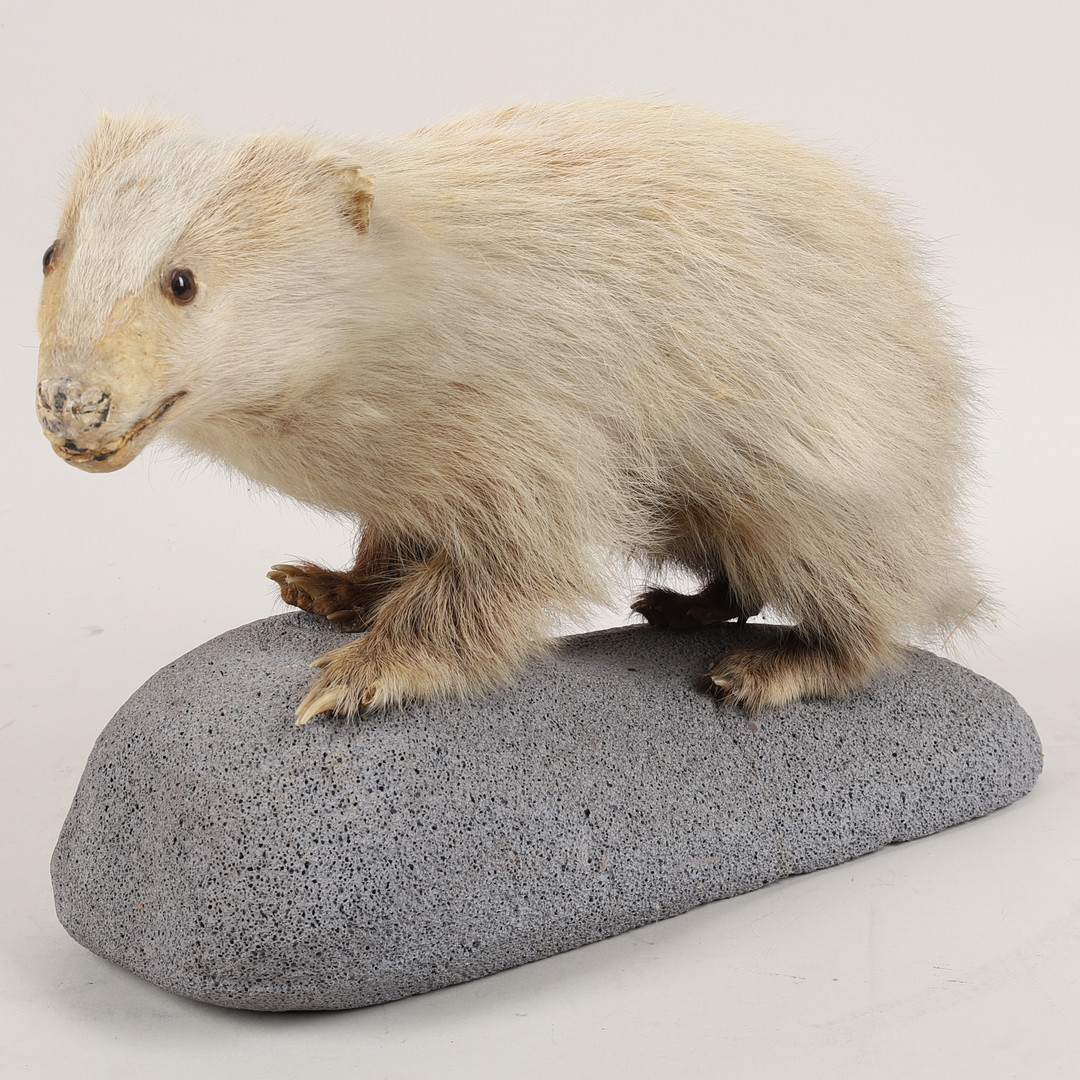 3750716. Taxidermi, grævling, leucistisk.