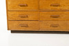 Stativbord, birkefiner, 15 udtræksskuffer, top med løs glasplade. Sverige 1940'erne/50'erne