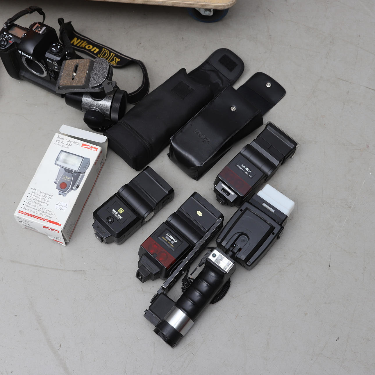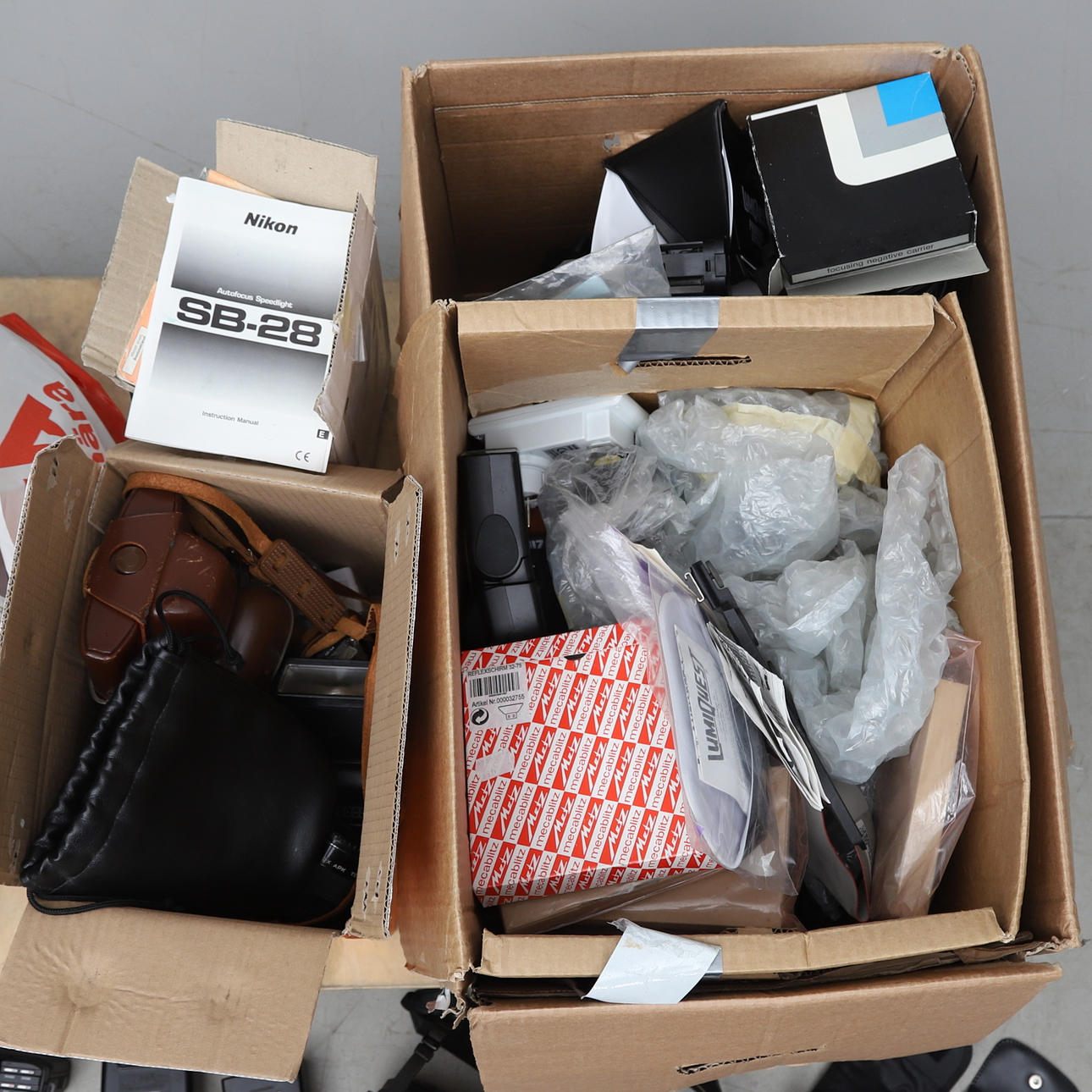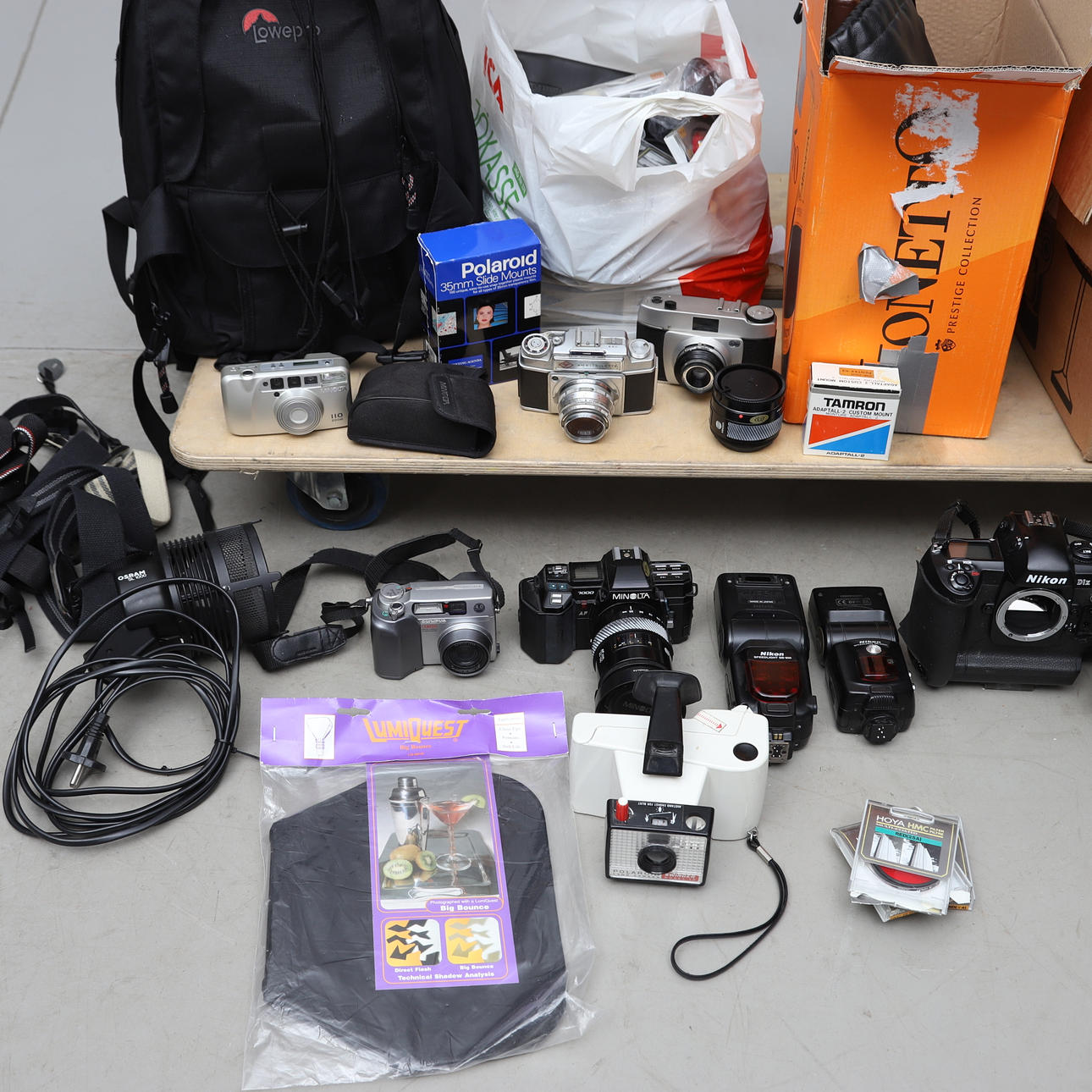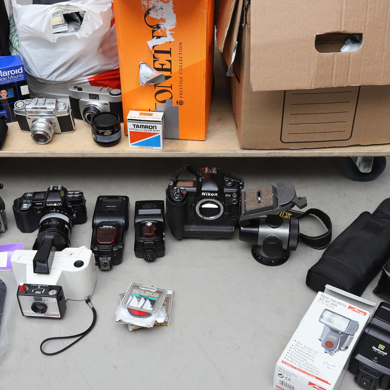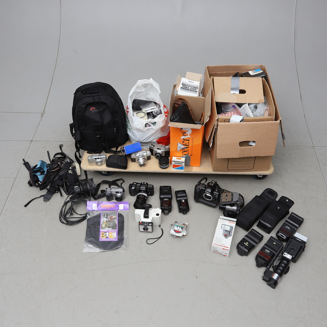 Kameraer fra forskellige producenter. Blandt andet Nikon, Minolta m.fl. Lommelygter, filtre og diverse tilbehør.