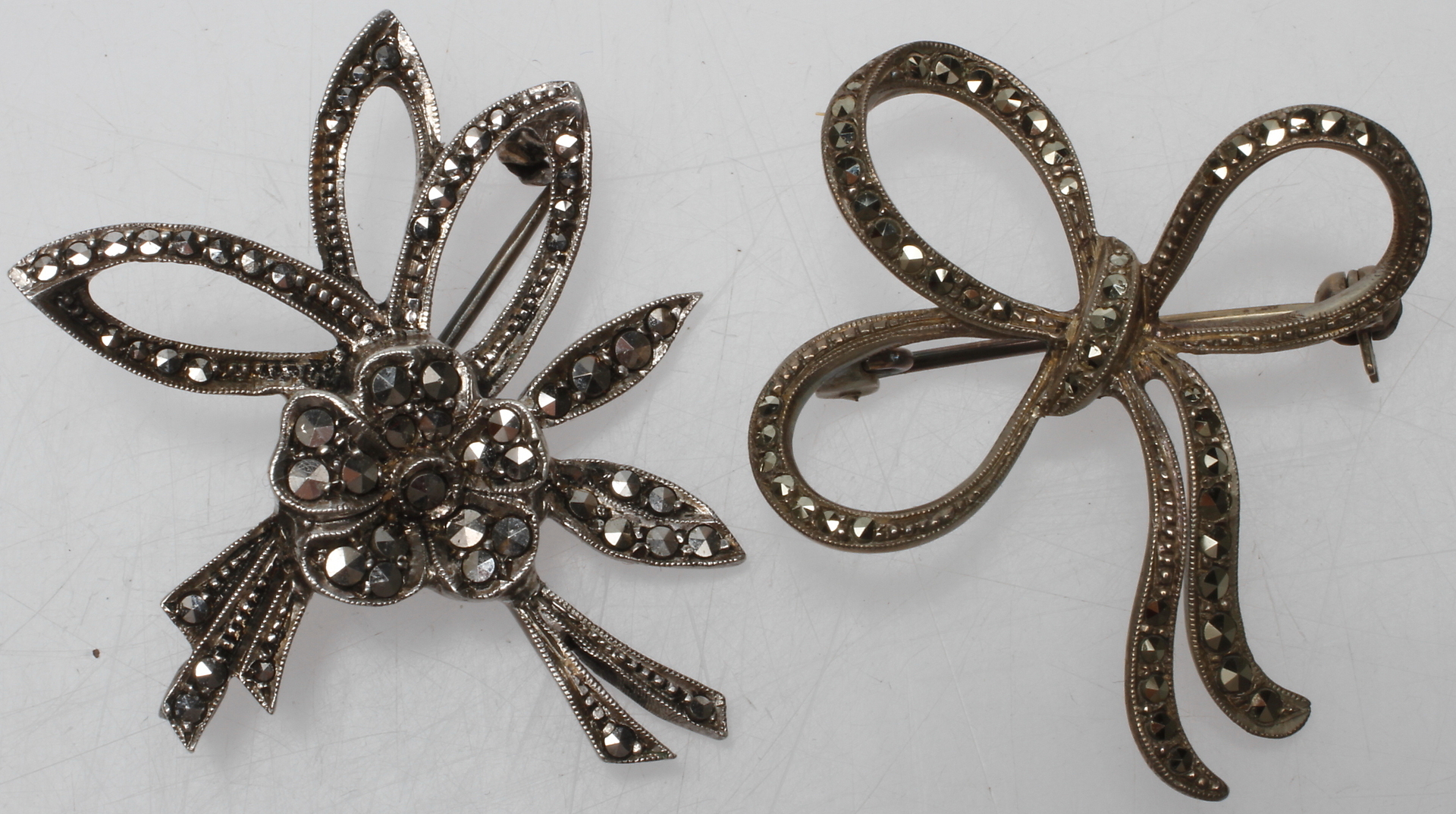 376248. BROCHER, 2 stk, sølv og marcasit, 1900-tallet.