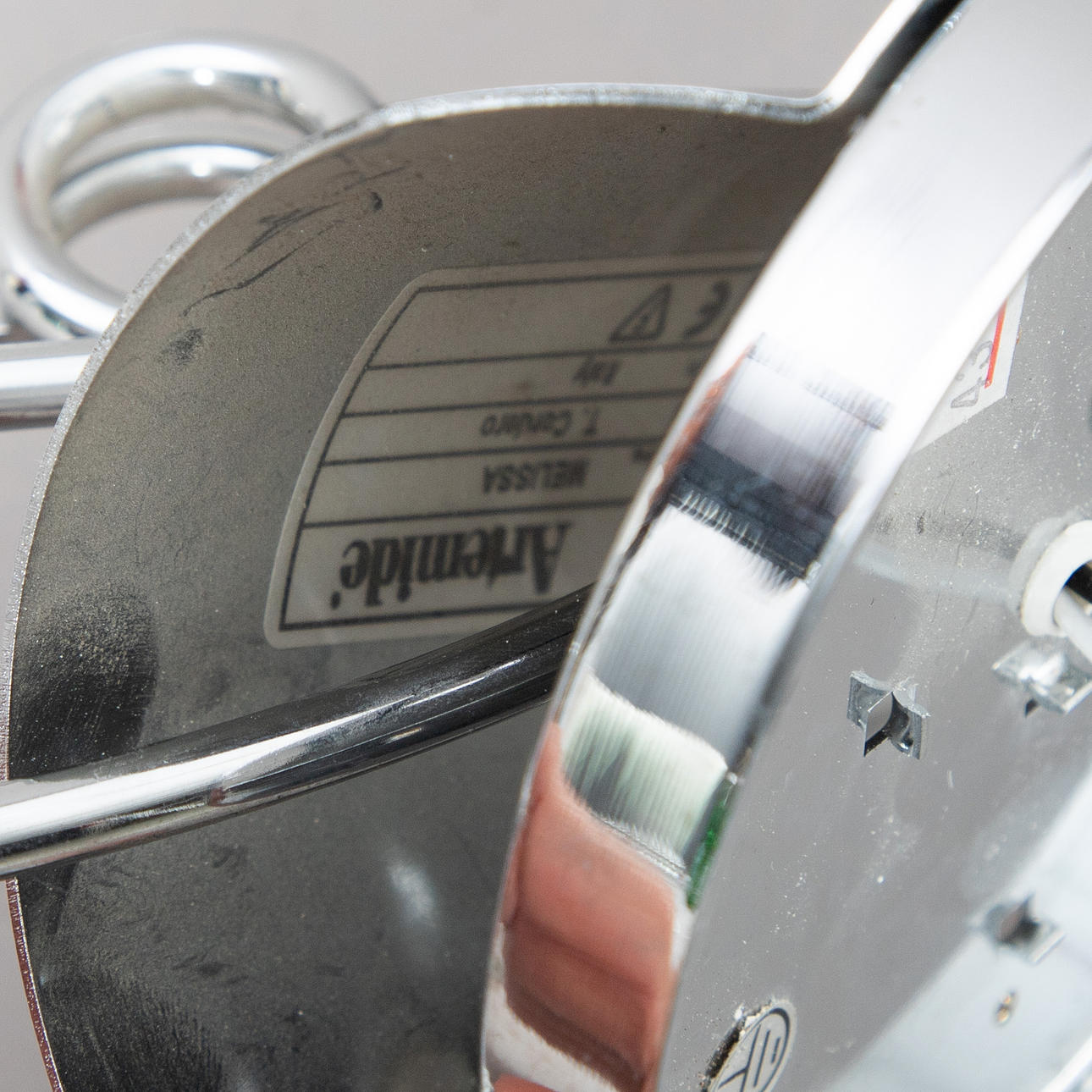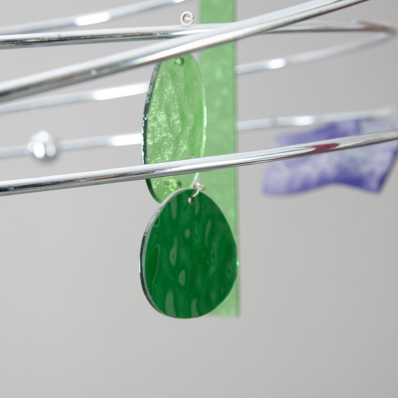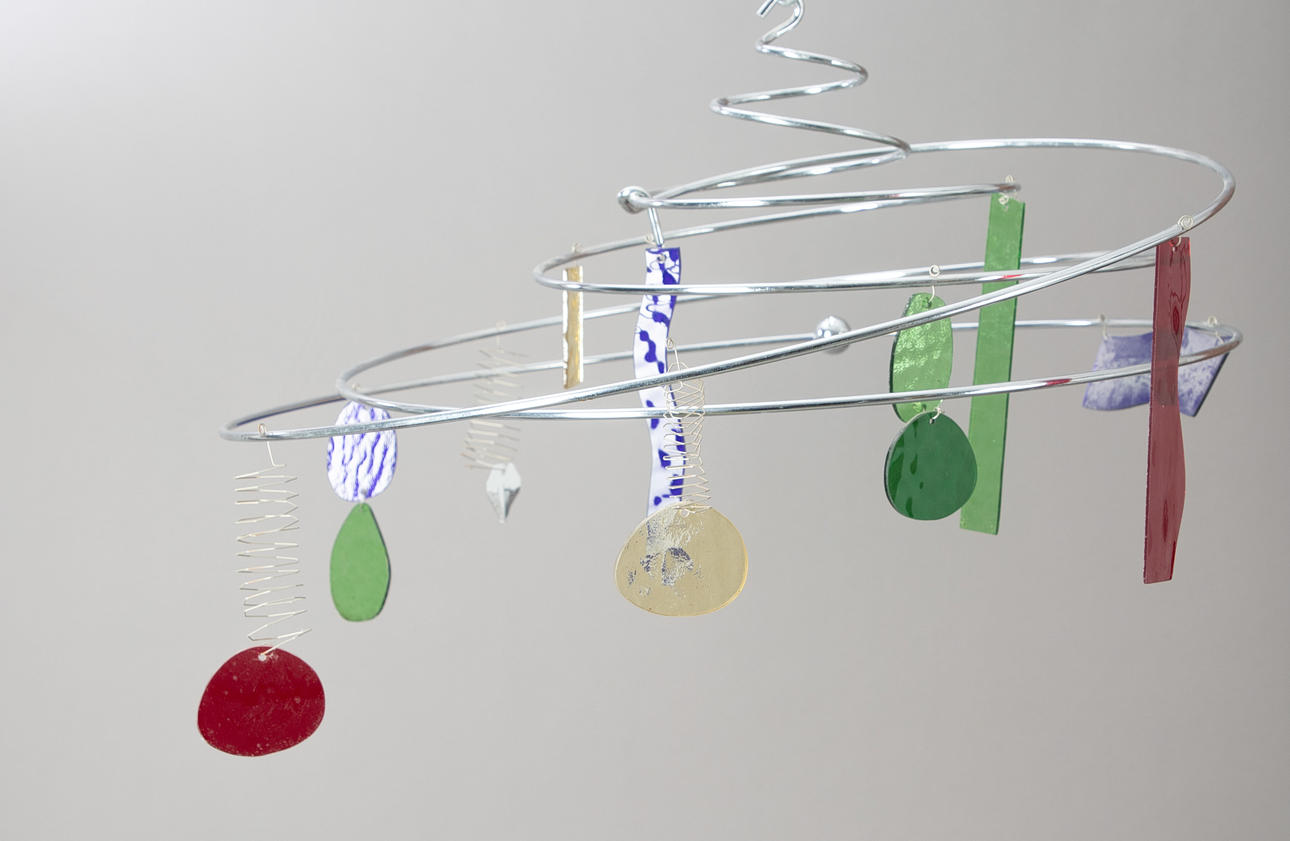 Forkromet metal og flerfarvet glas.