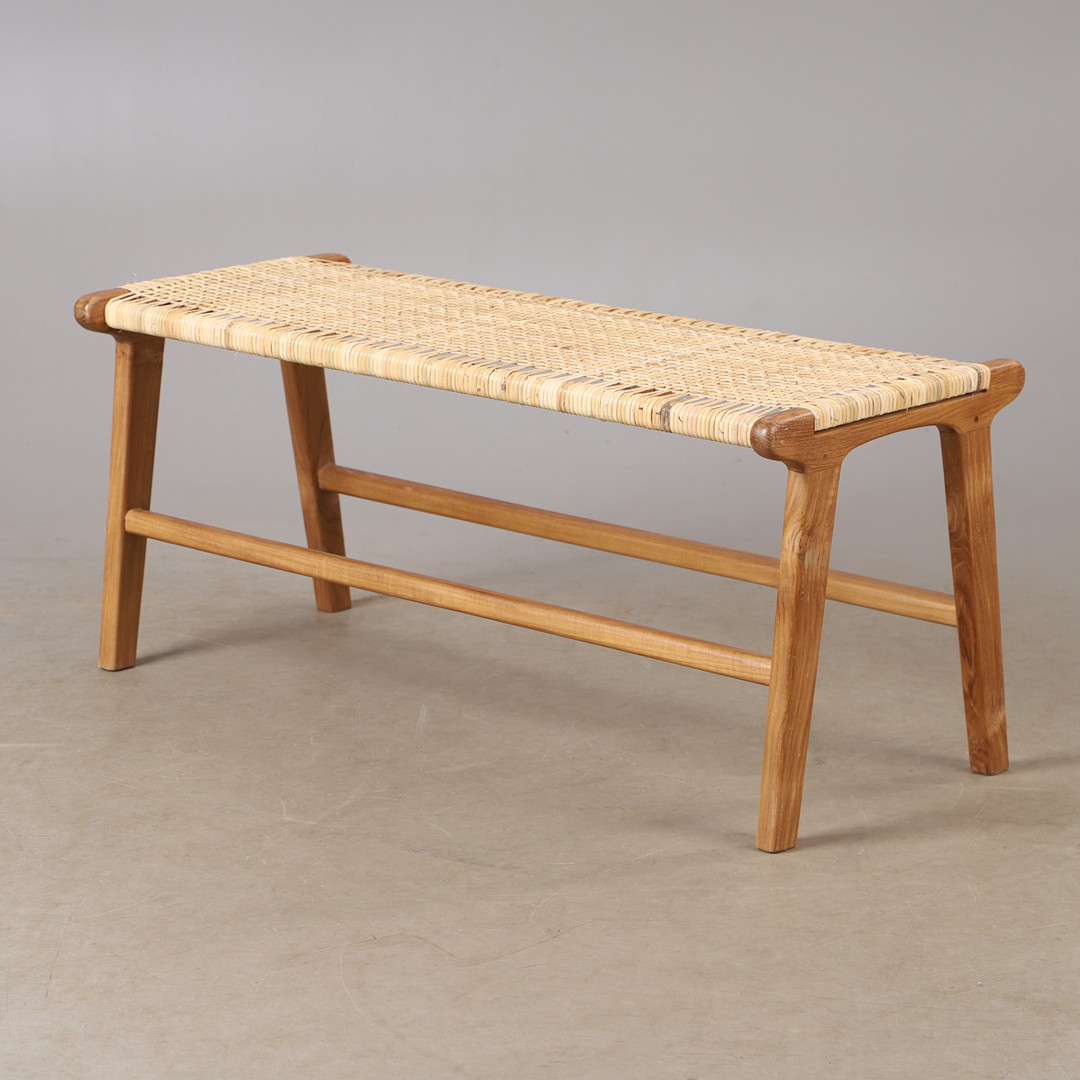 3764613. En moderne teak- og rattan bænk.
