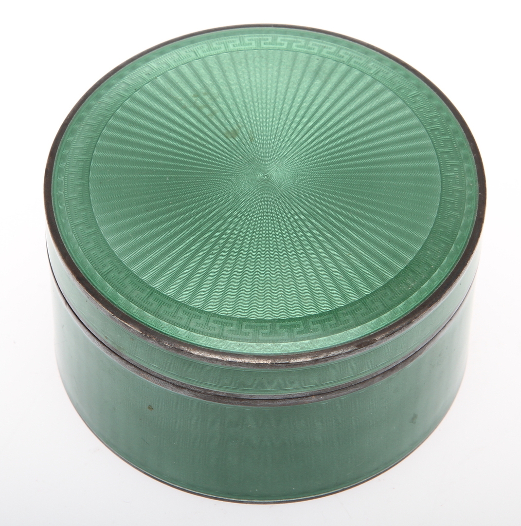 37668. BOKS. Sølv og emalje, ca. 120 gram.
