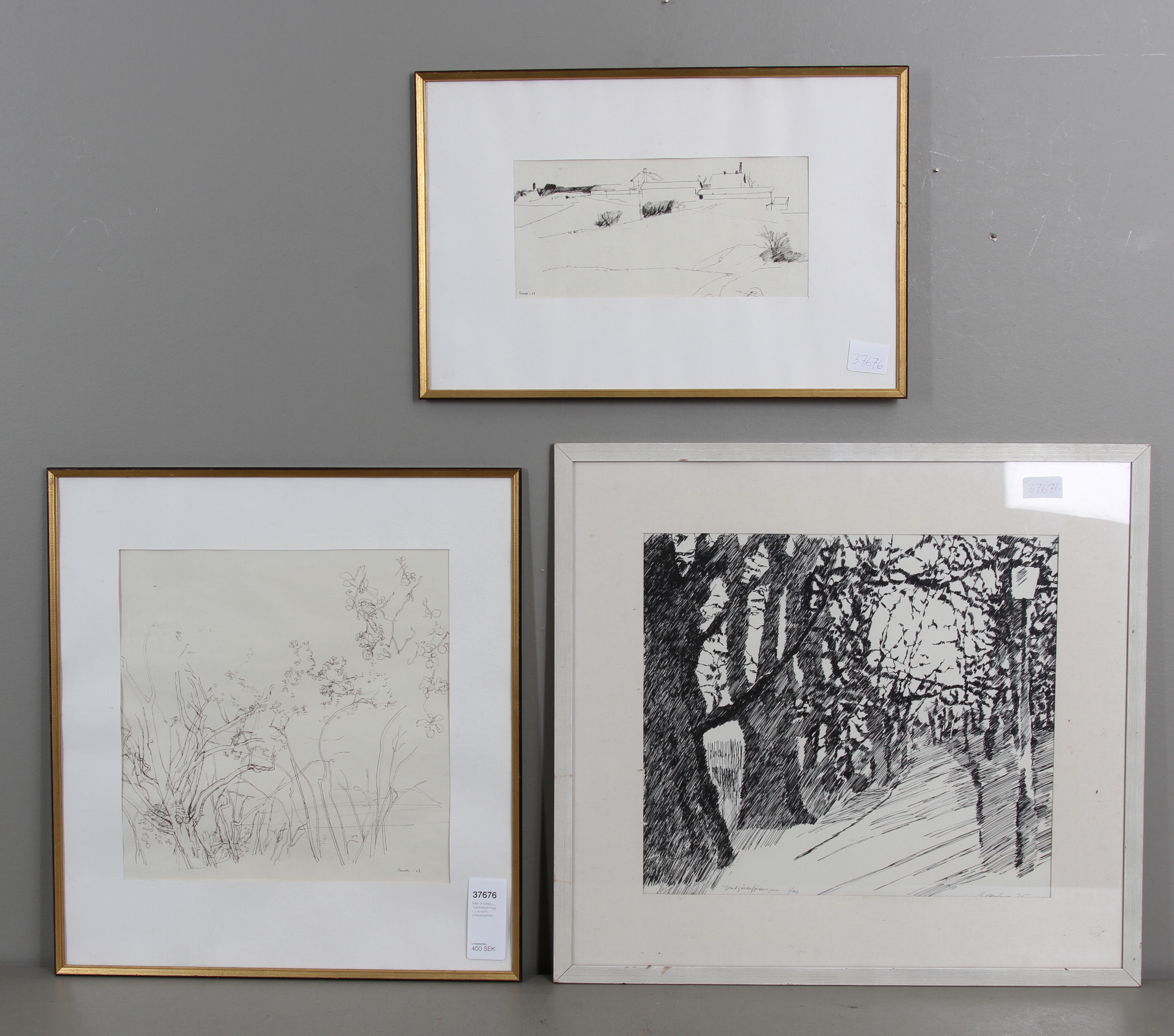 37676. PÄR THORELL. Tuschtegninger 2 stk og Linköping billede.