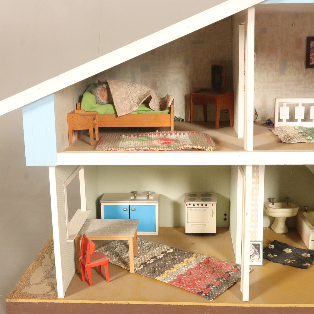 3767775. Et dukkehus med tilbehør, midten af det 20. århundrede.