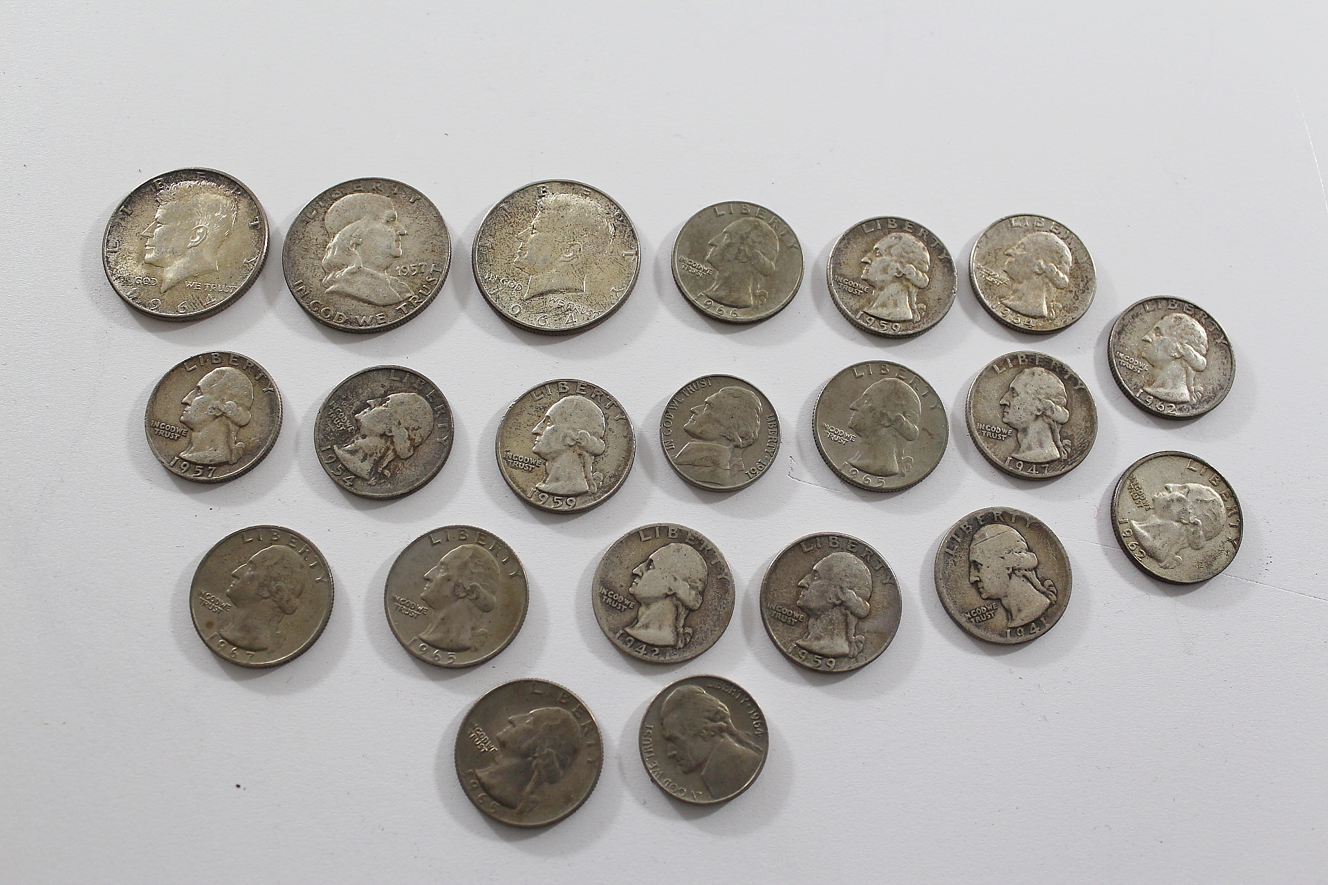 376873. MØNT, 21 stk, USA, Sølv ca: 151 g.