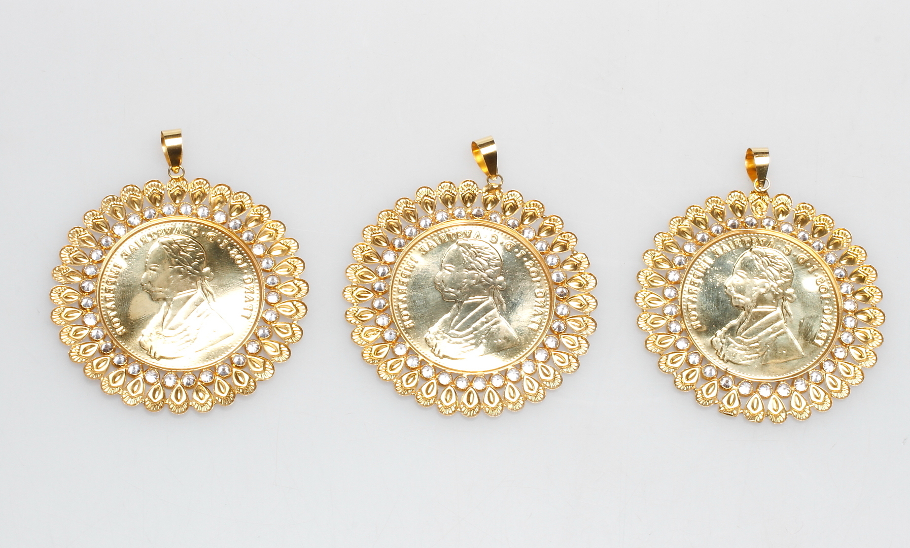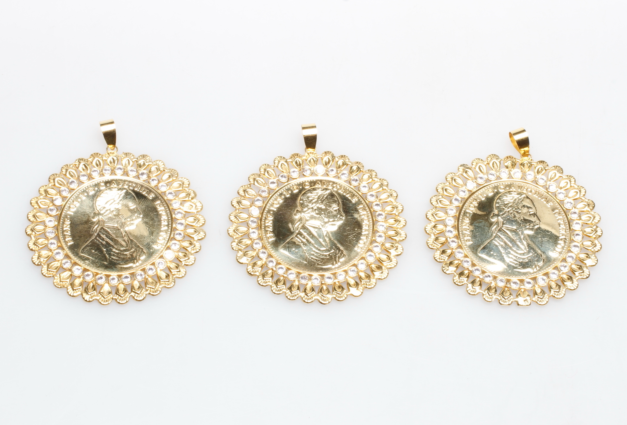 376954. HANDSÆNG 3 STK, 9k guld, vægt ca 27,7 gr.