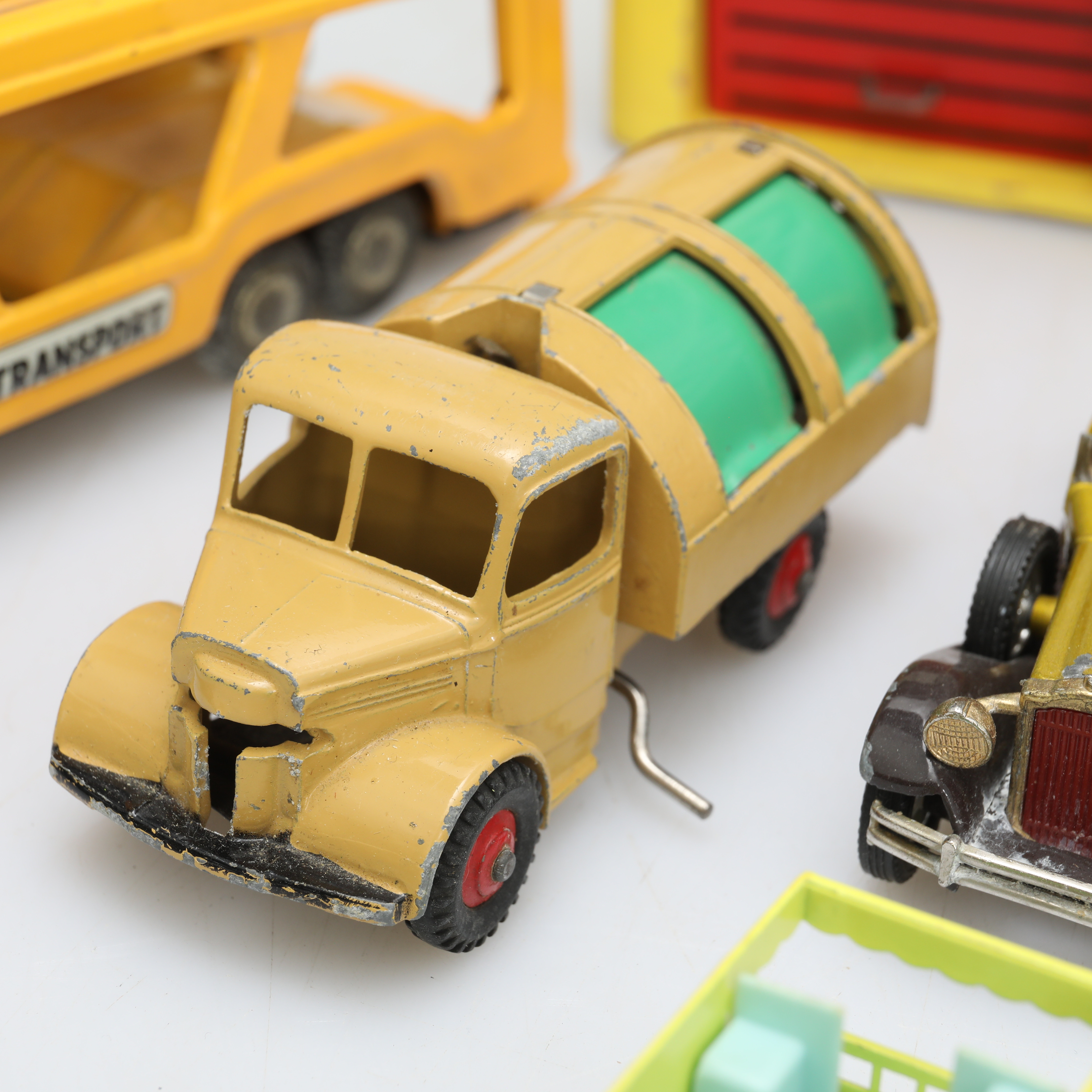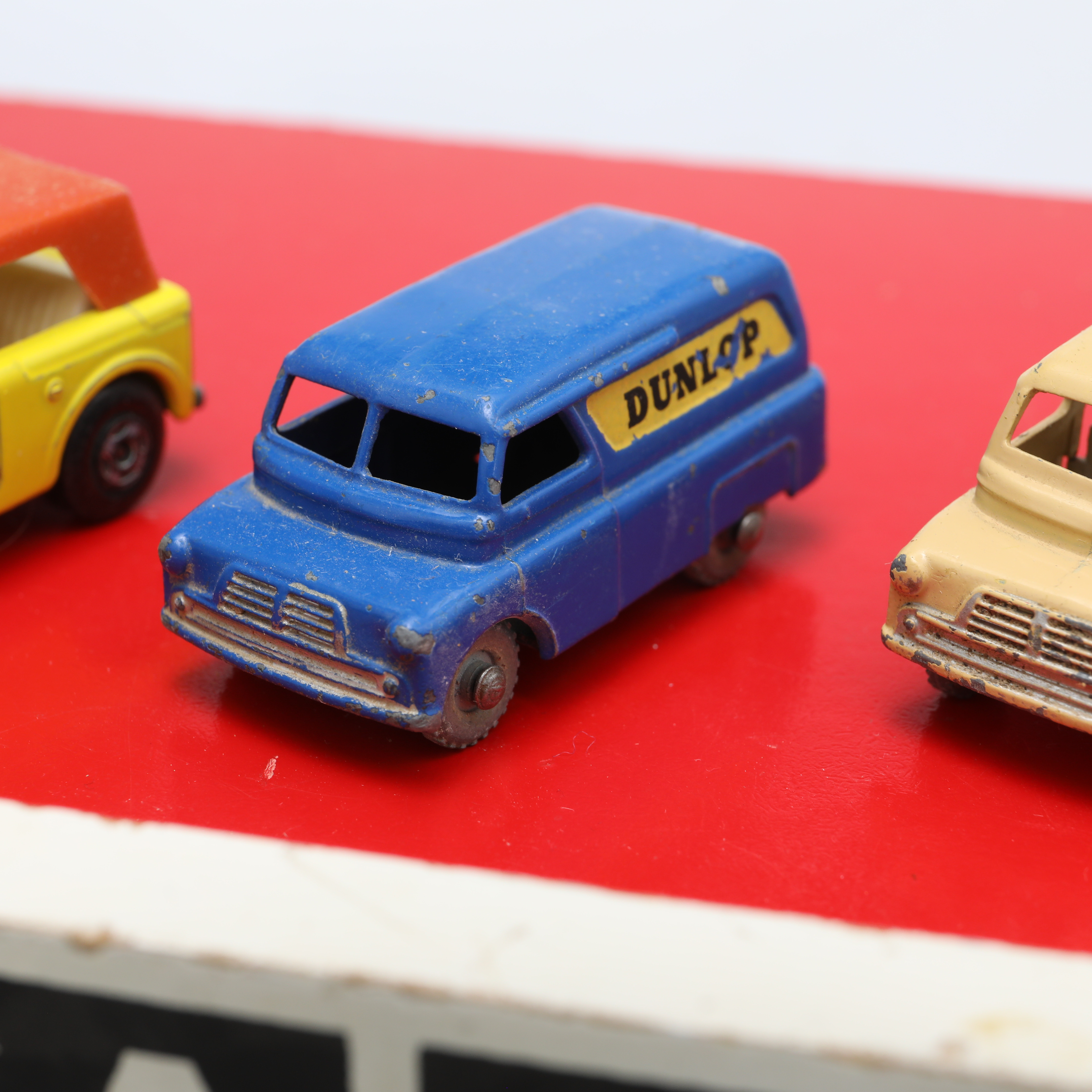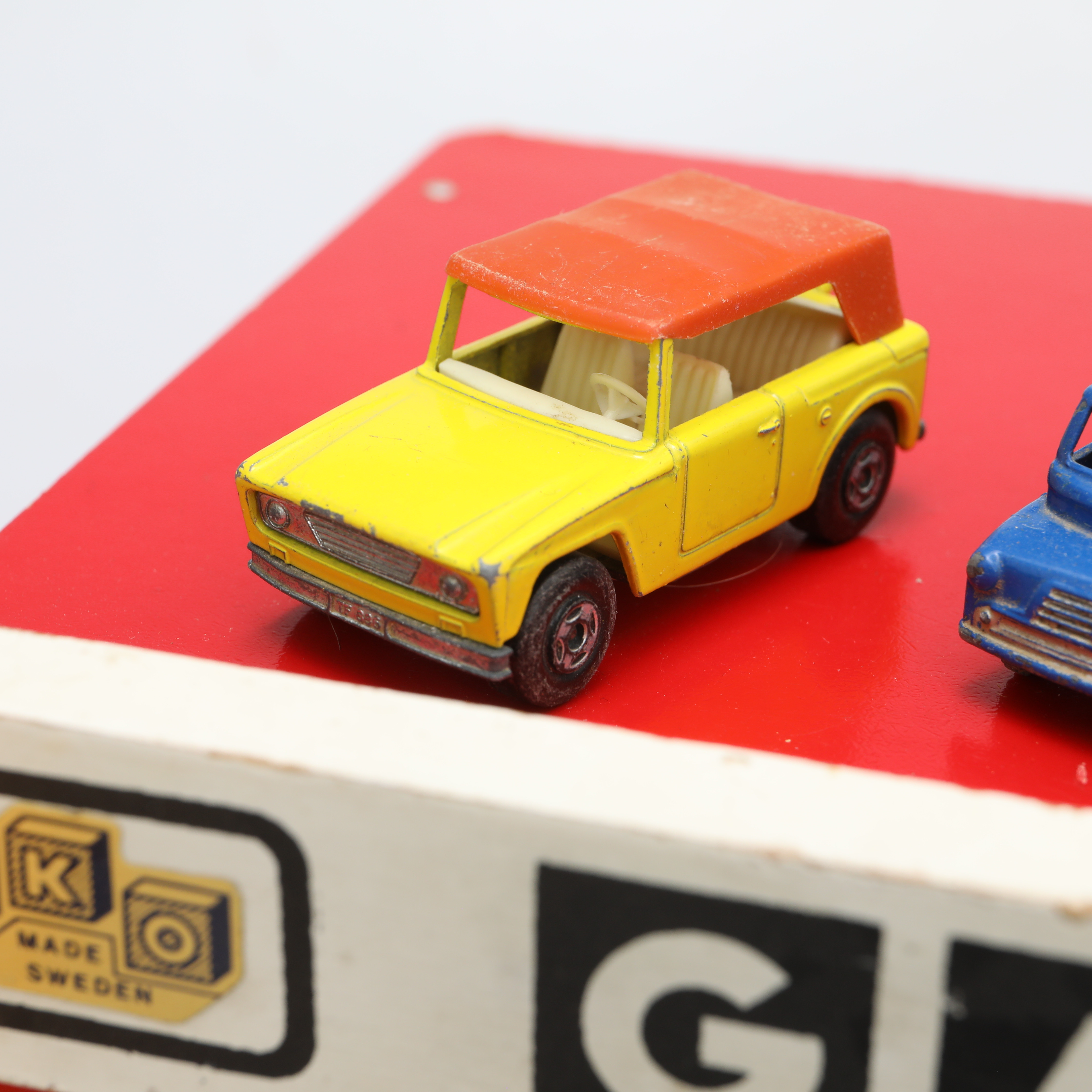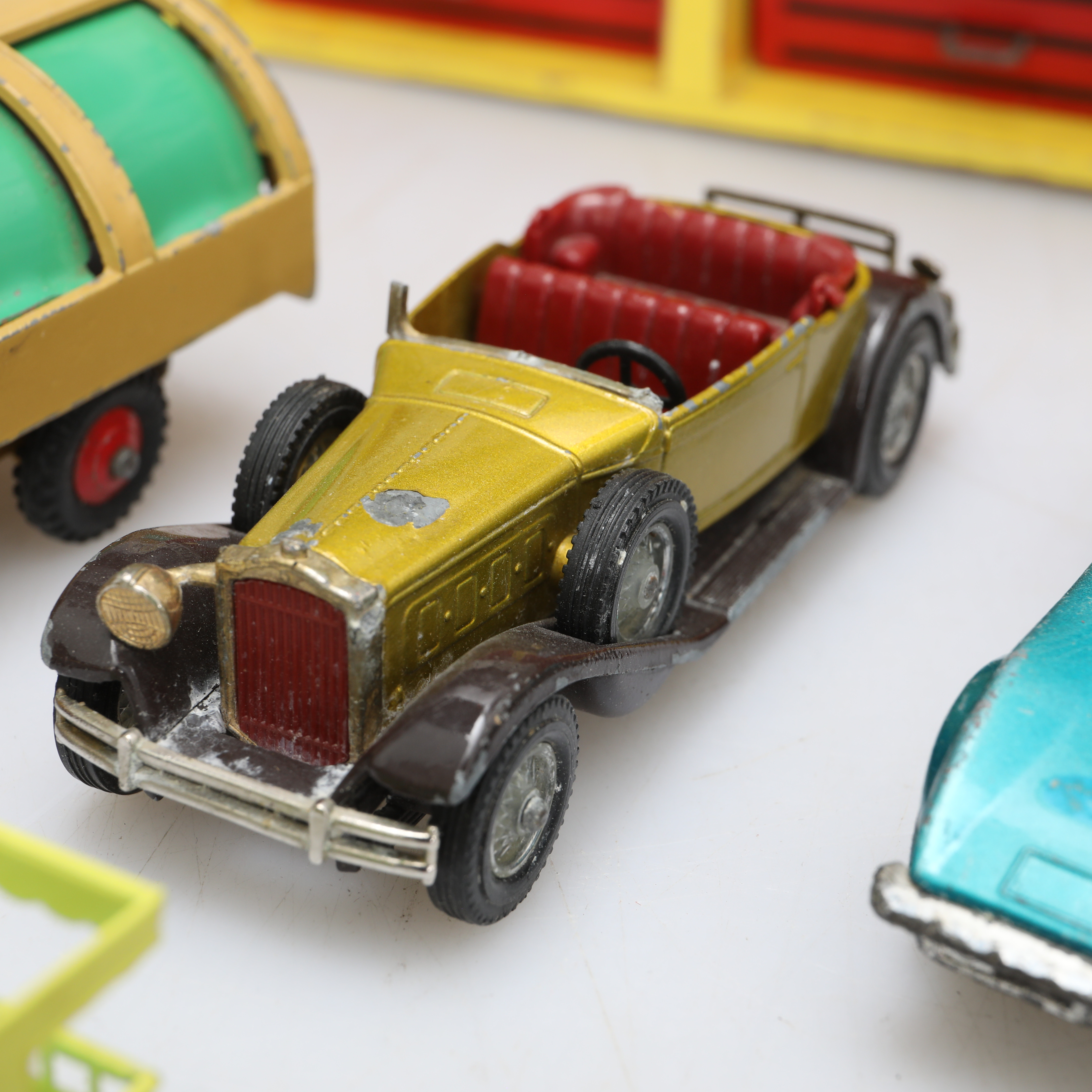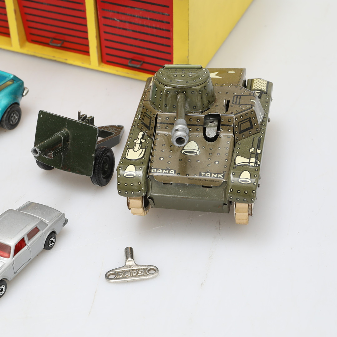 3771229. LEGETØJSBILER, metalplader og trægarage.