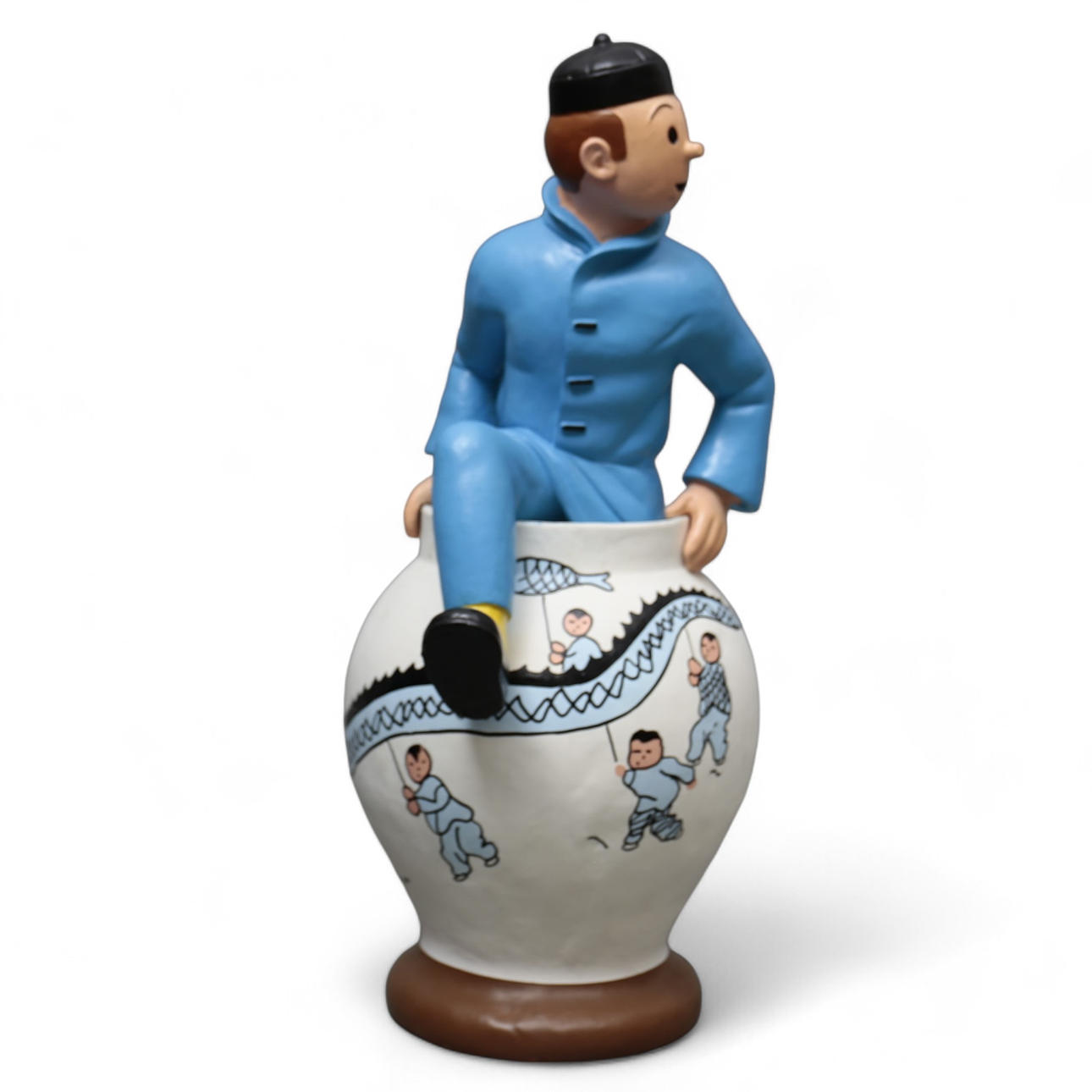 3776158. „Tintin med kinesisk vase“, polykrom polyester skulptur.