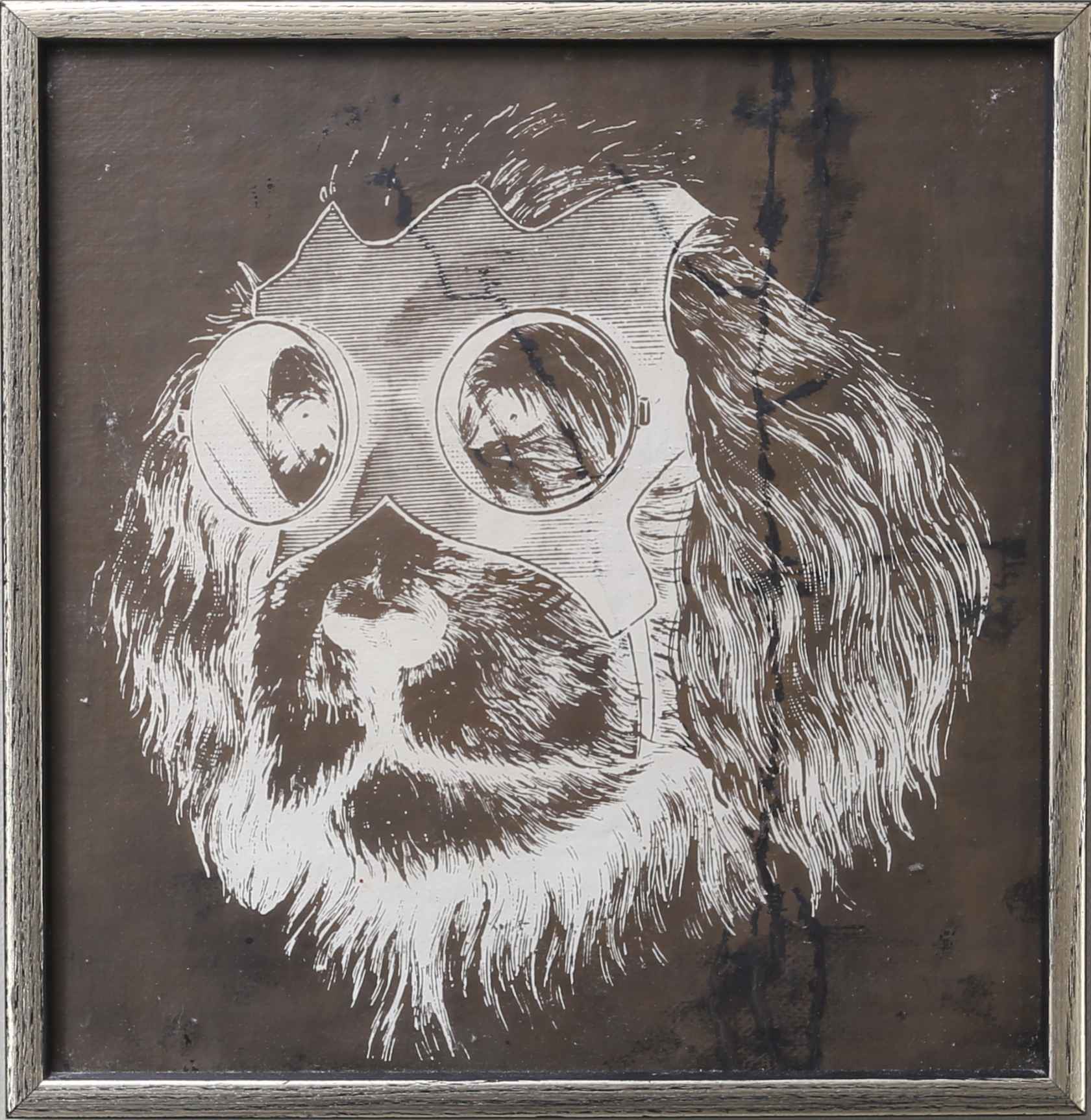 377771. PETER WEISS. Rallyhund, træsnit, 1961.