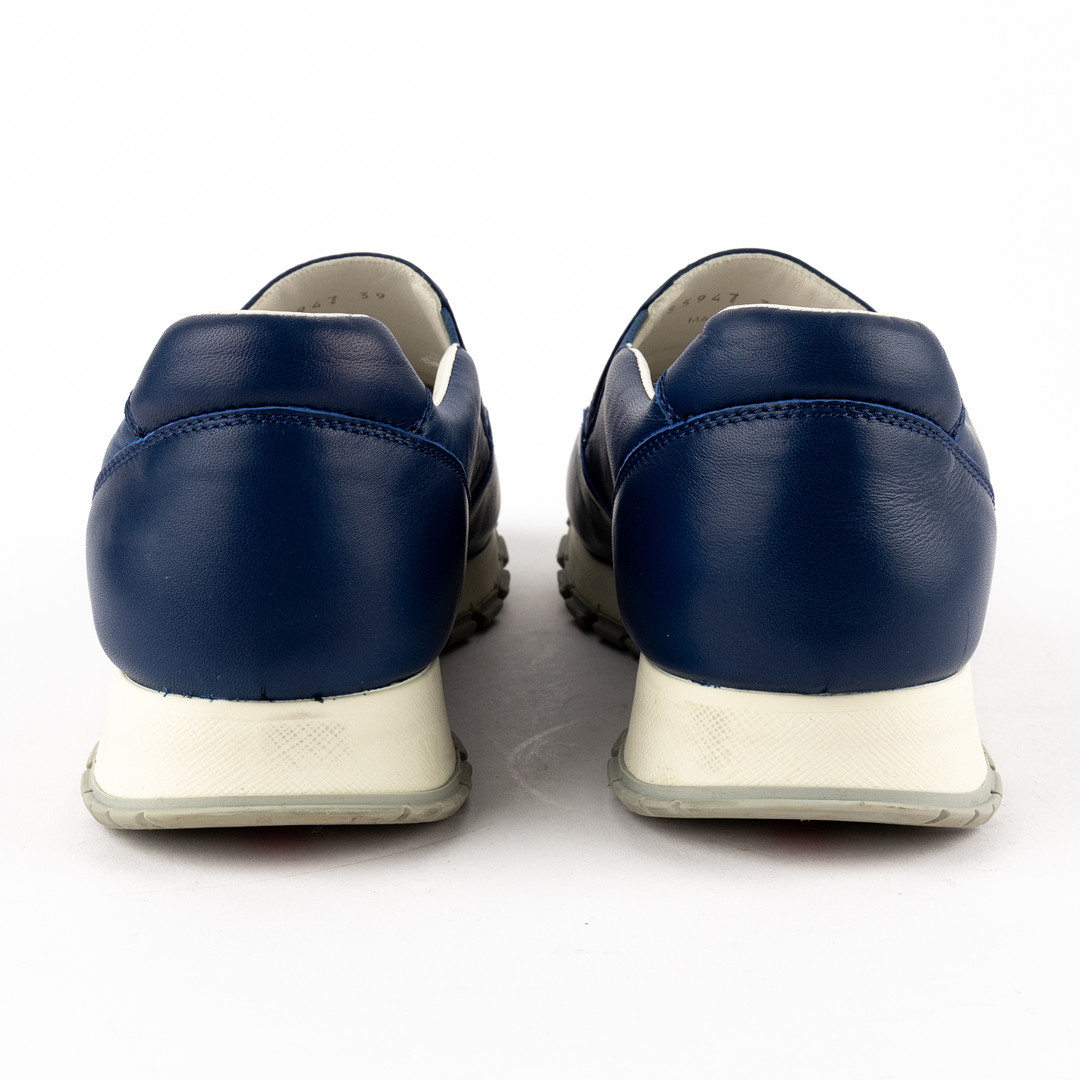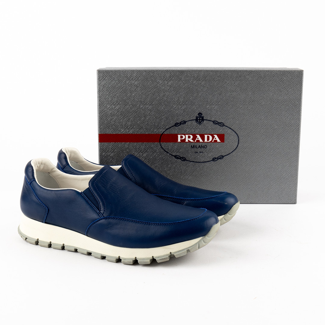 3779288. PRADA. Sko, blå læder, str. 39.
