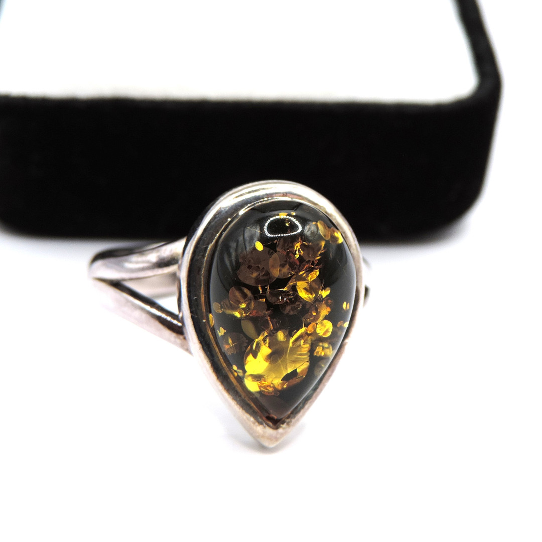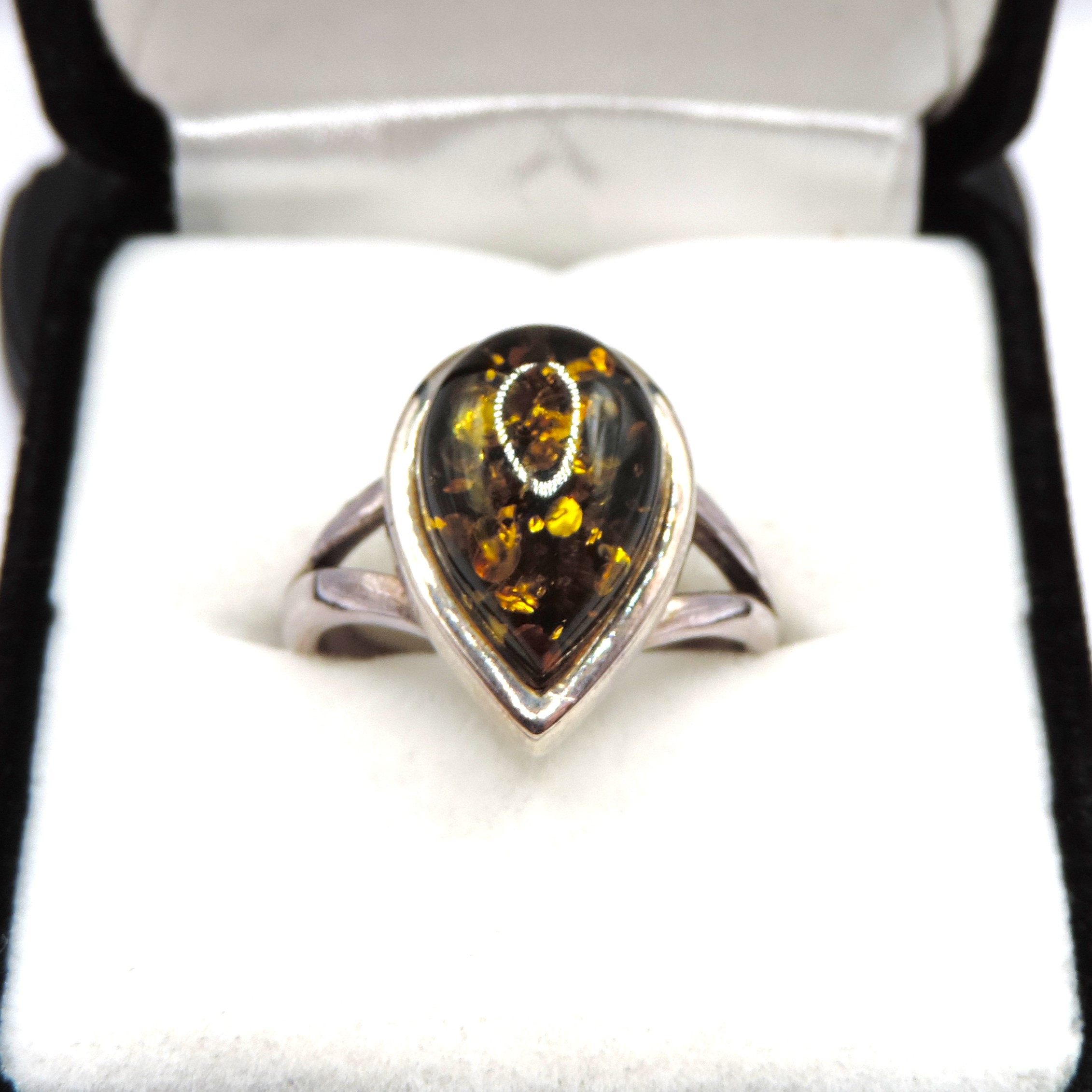 3779922. STERLING SØLV CABOCHON RAV RING.