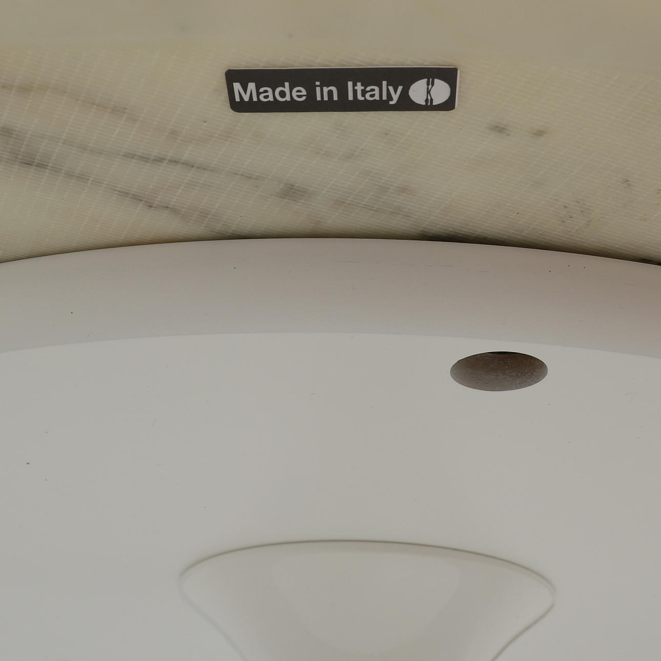 Trompetformet fod med carrara marmorskive. Højde 38, 107 x 70 cm.