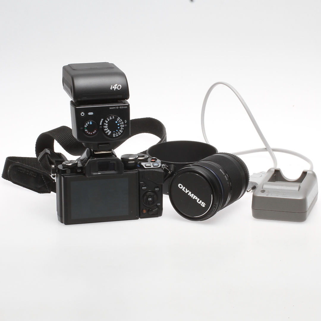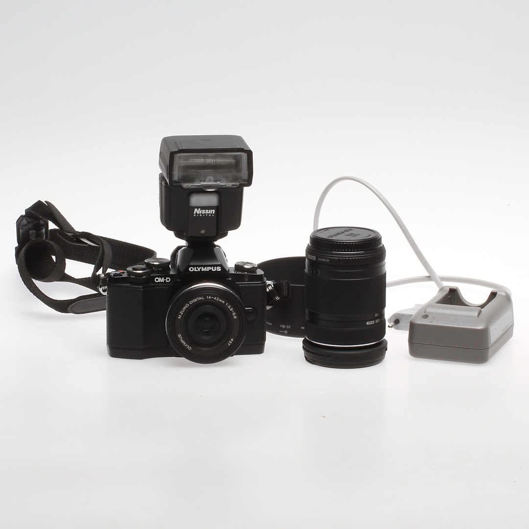 378166. DIGITALT SYSTEMKAMERA, Olympus OM-D E-M10, blitz og objektiv.