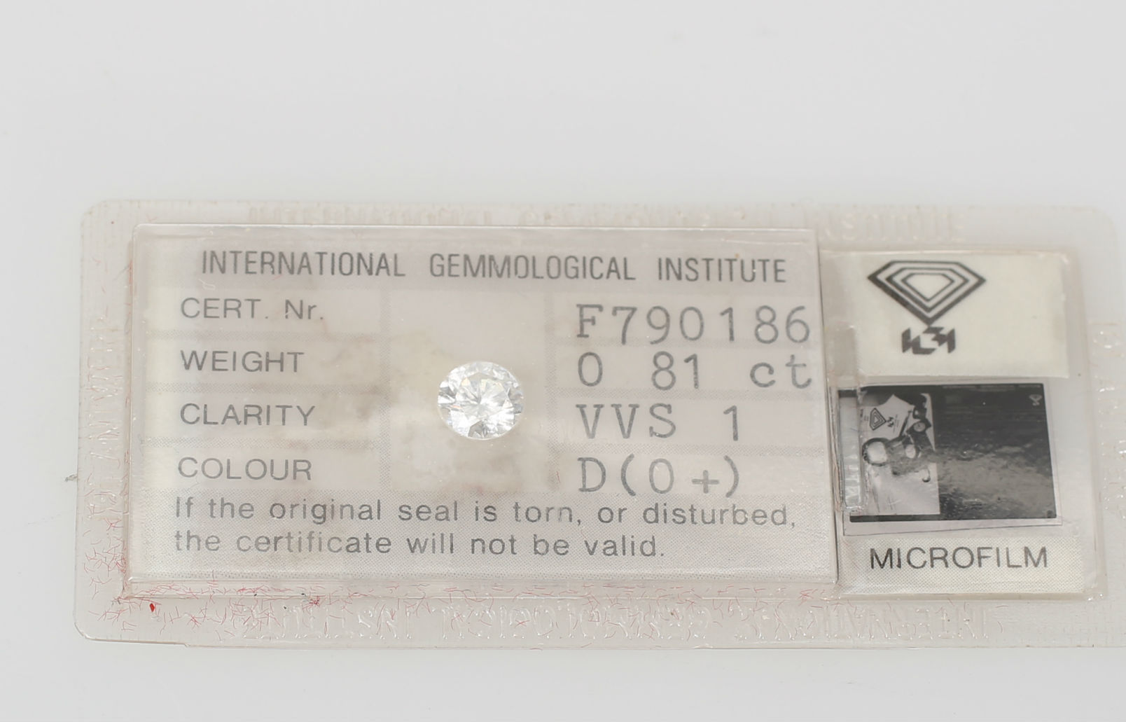 378169. DIAMOND, 0,81 karat, IGI-certificering.