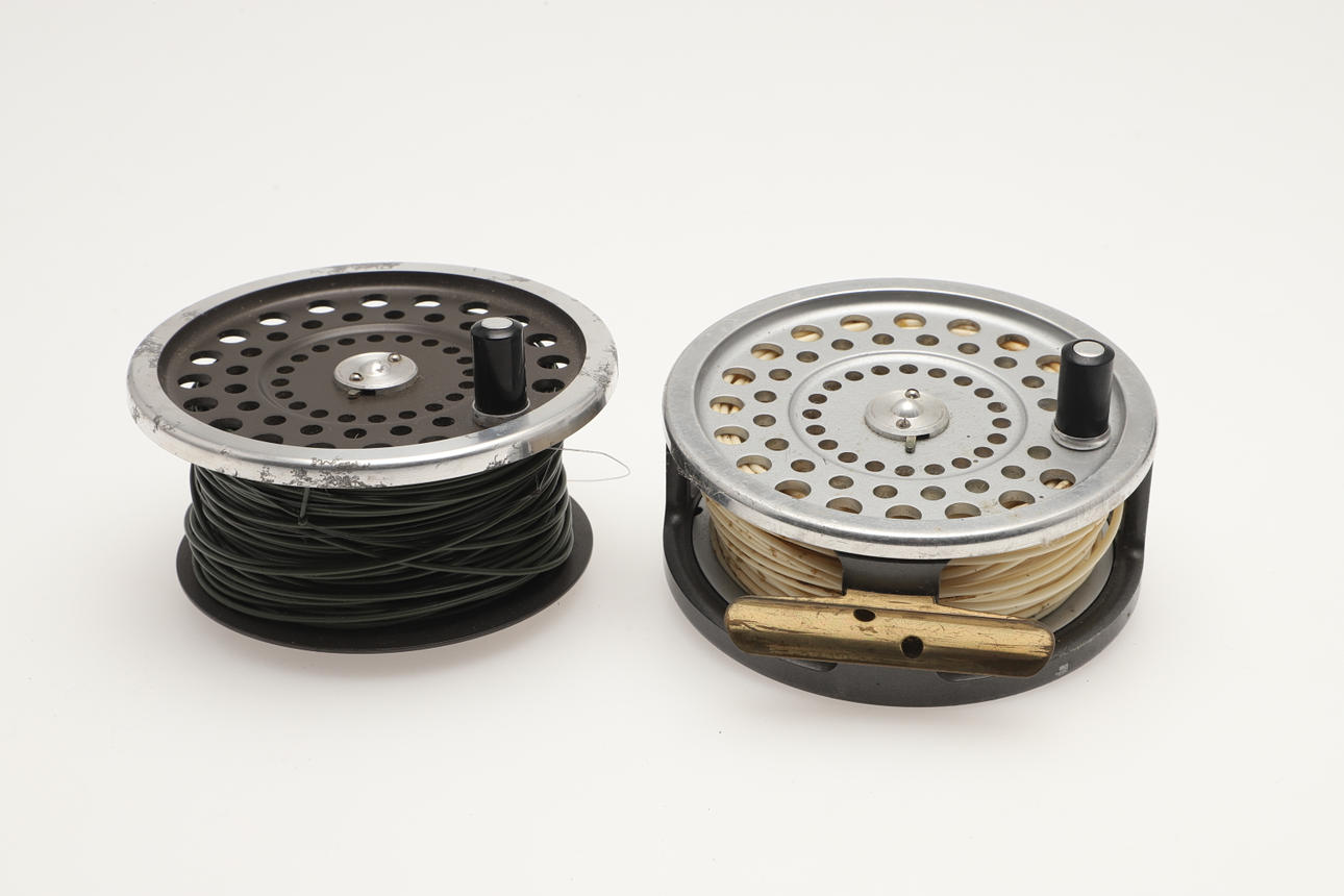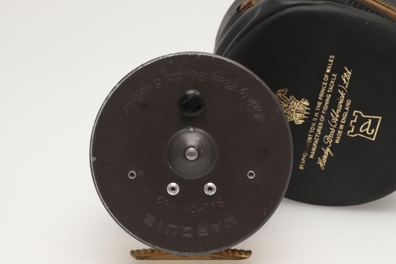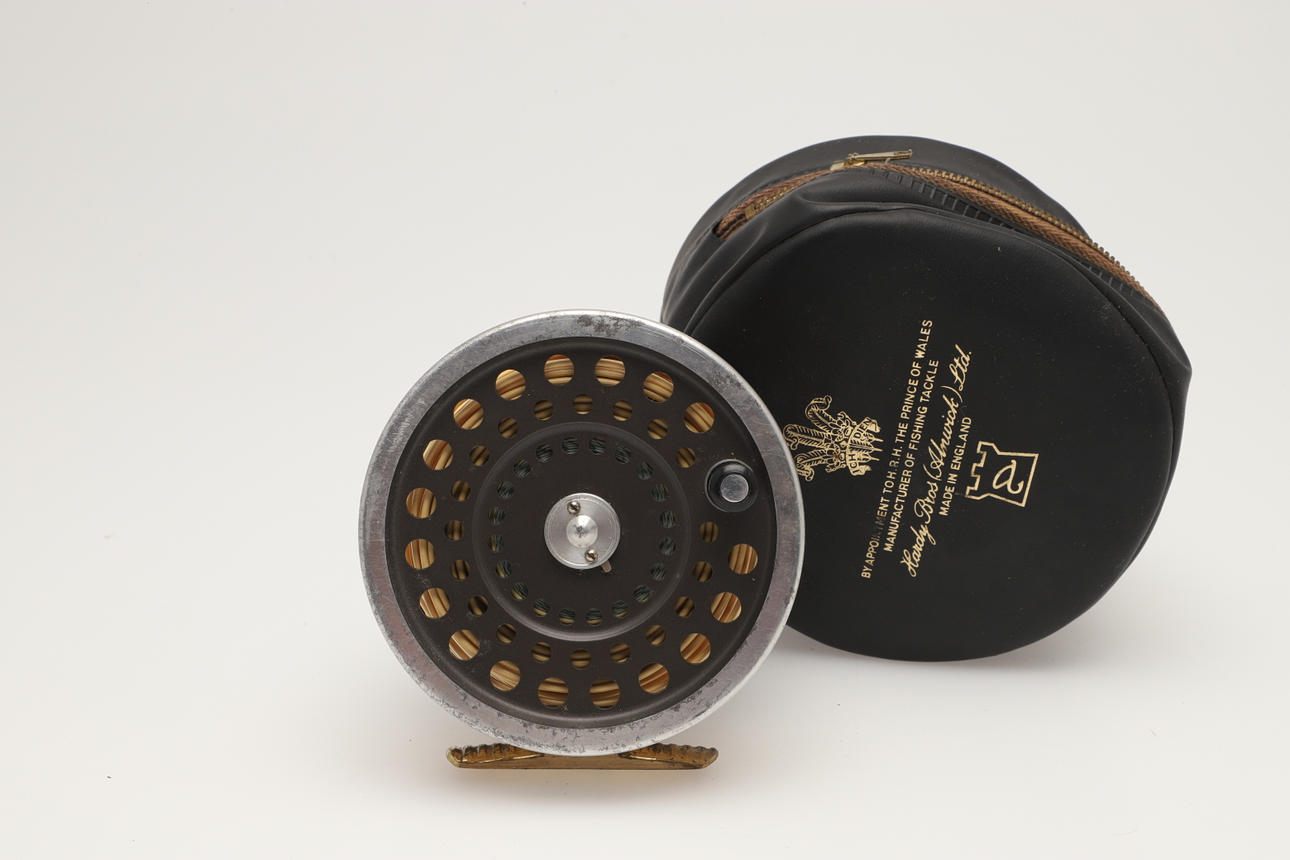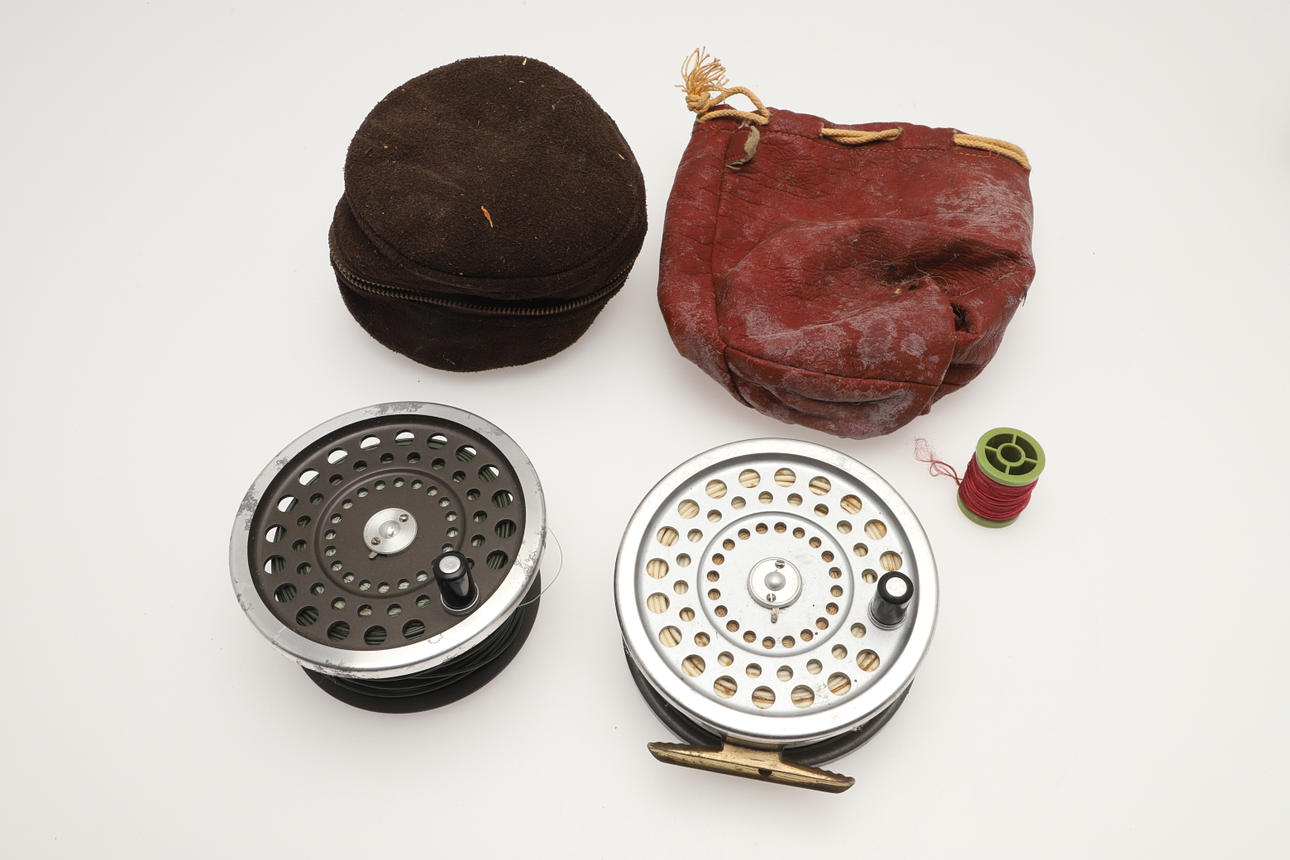 Inklusive en Marquis Salmon nr. 3 hjul (4 tommer) med hylster, en Hardy Salmon nr. 2 hjul (ingen kasse, 4 tommer) og en Hardy Wet Fly-spole.