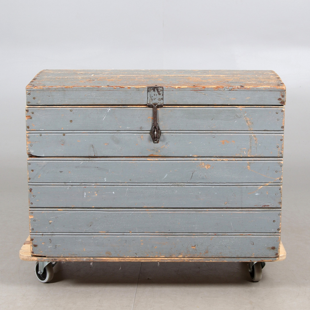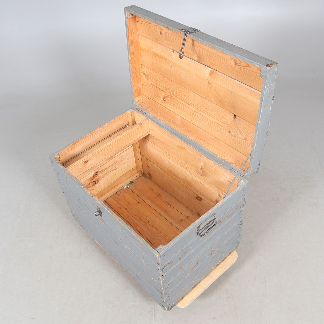 3786627. Kiste, gråmalet træ, 20. århundrede.