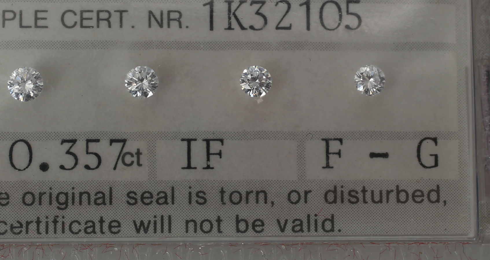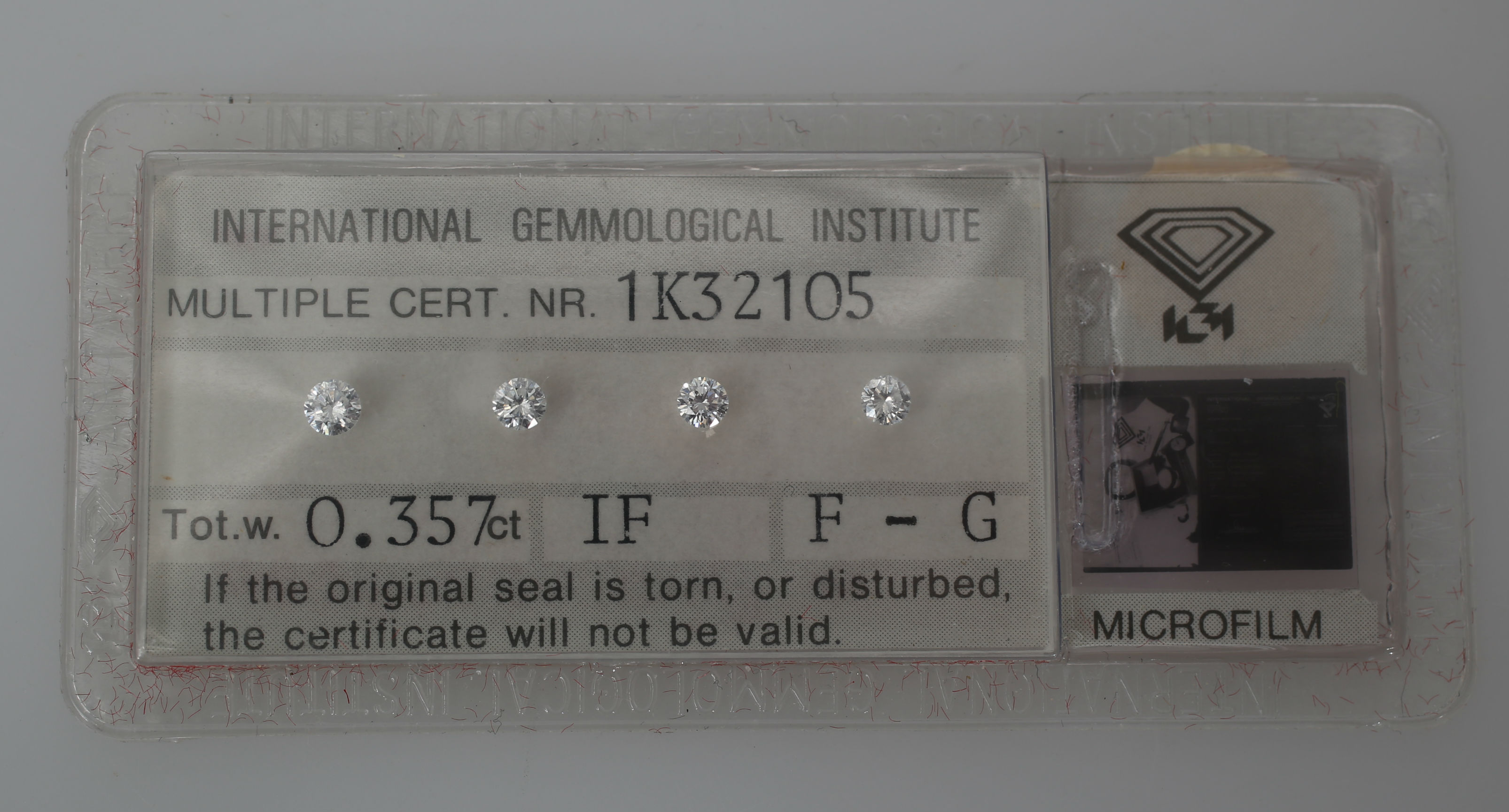 378901. DIAMANTER, 0,357 karat, 4 styk, IGI-certificering.