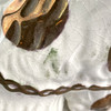 Brugsslitage, pletter, delvist revnet, en hund med en revne i håret.