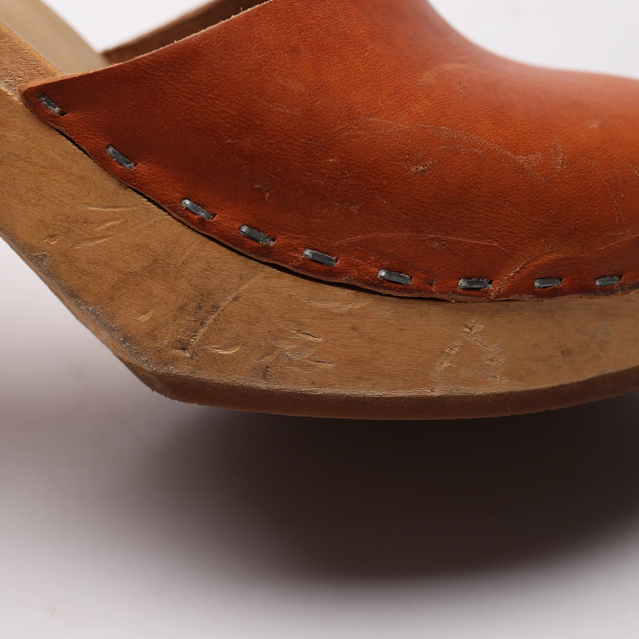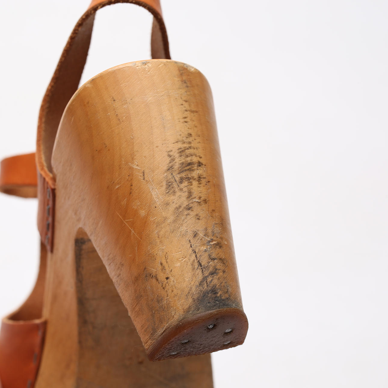 Brugsslitage, snavset sål. Træ med ridser og mærker.