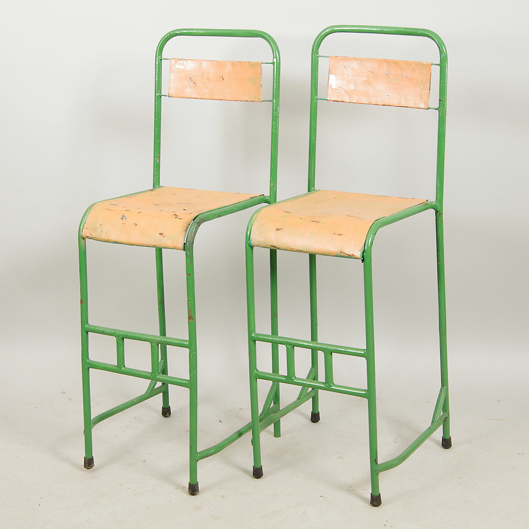 379276. BARSTOOLS, 1 par, malet metalplade, industrielt design.