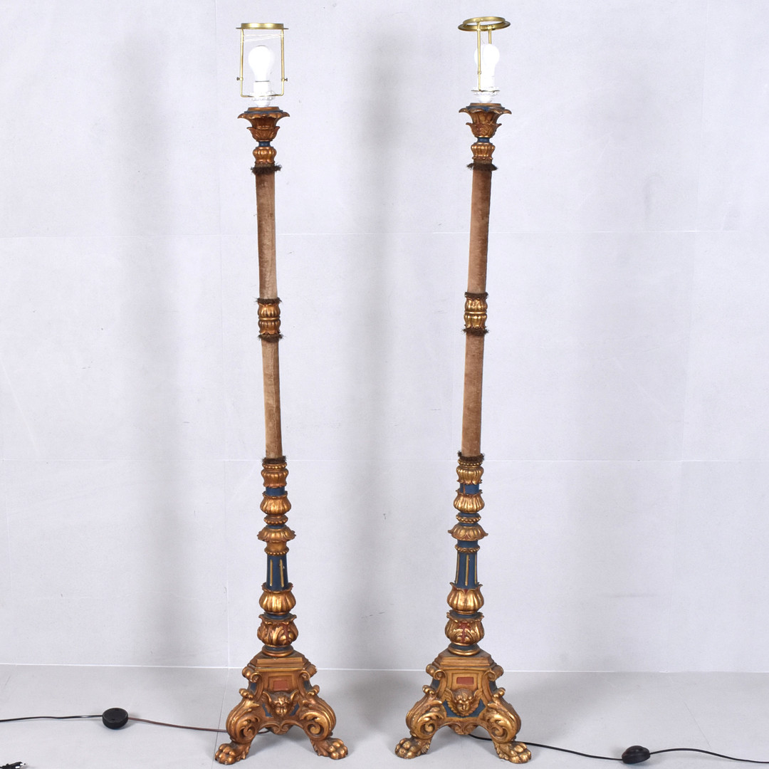 3795983. GULVLAMPER, 2 stk., træ/stof, 20. årh.