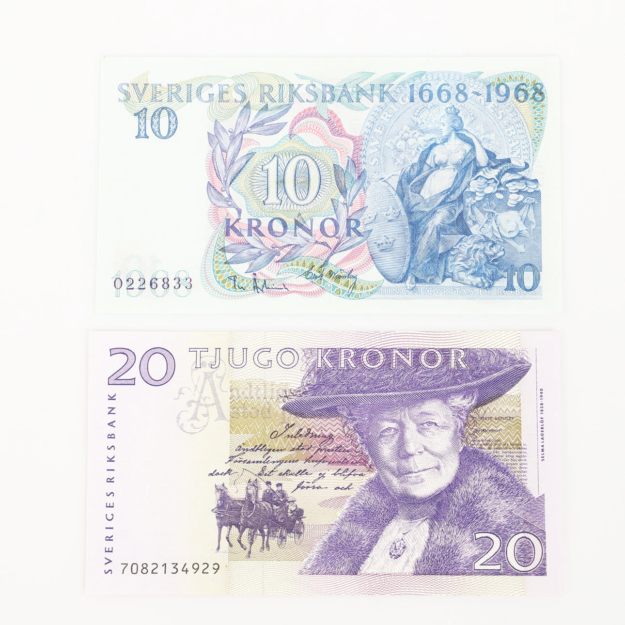 3796745. 21 svenske pengesedler, 20. århundrede.