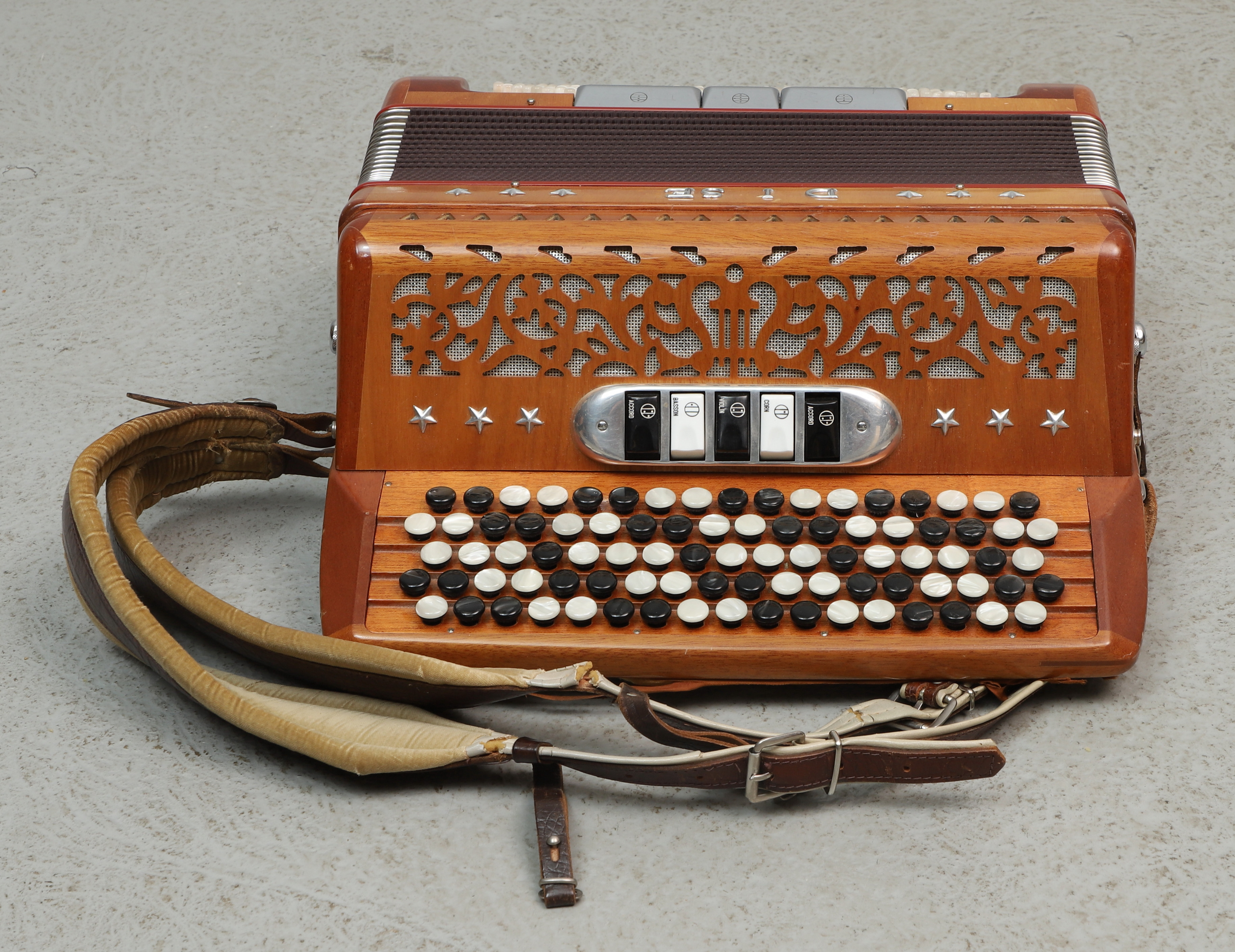 3800216. Harmonika, knap, træ, Dise, Italien.