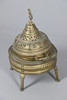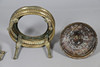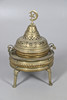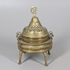 En stor røgelsesbrænder i messing eller brazier med et gennemboret låg, skål med to håndtag og separat stativ. 60 cm høj.