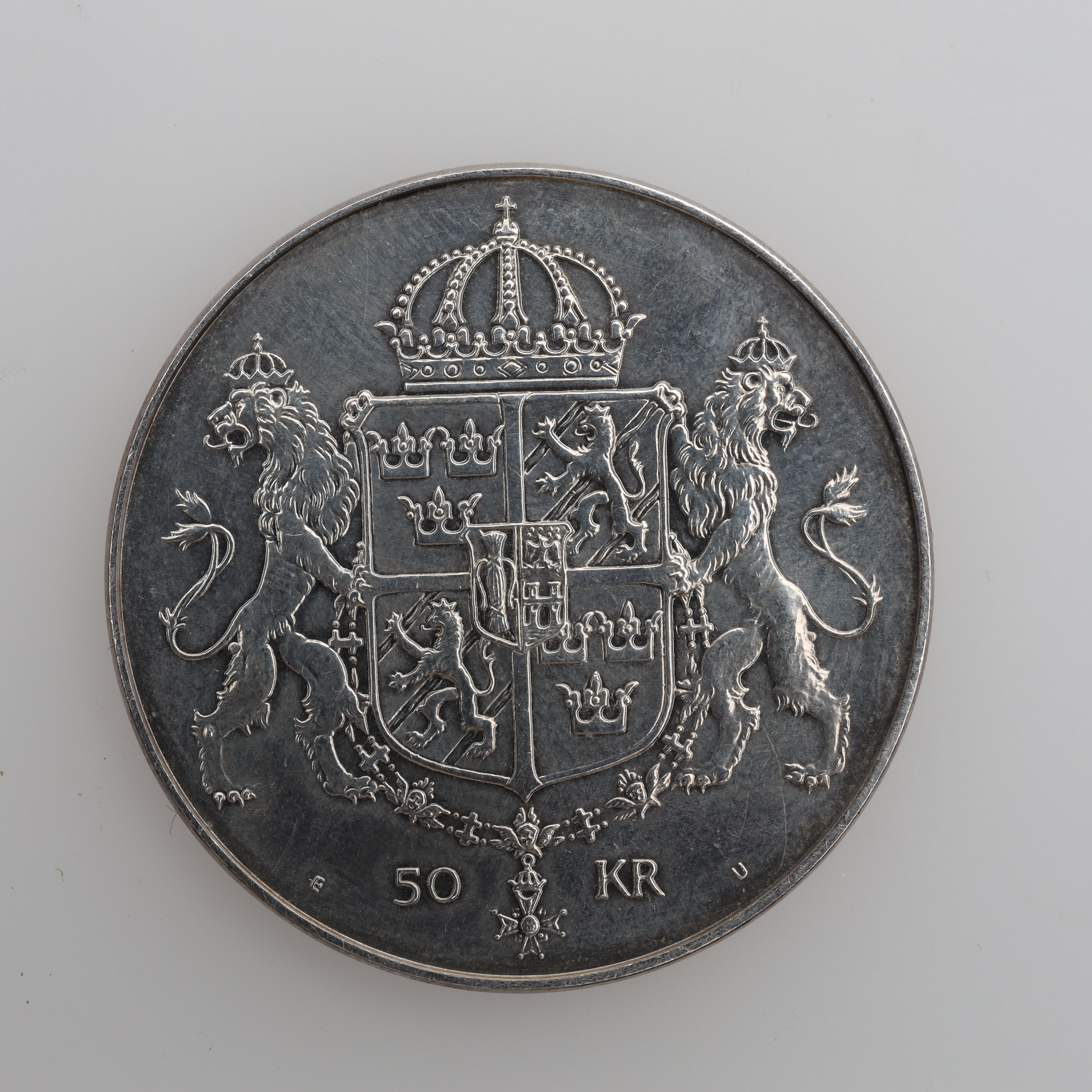 3800673. MØNT 2 stk sølv vægt ca. 50 gram.