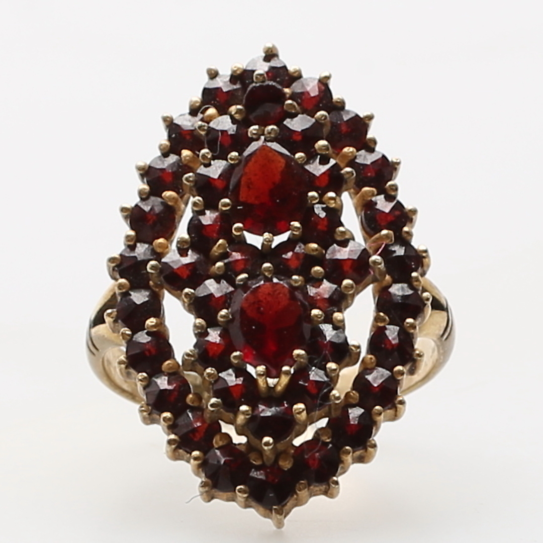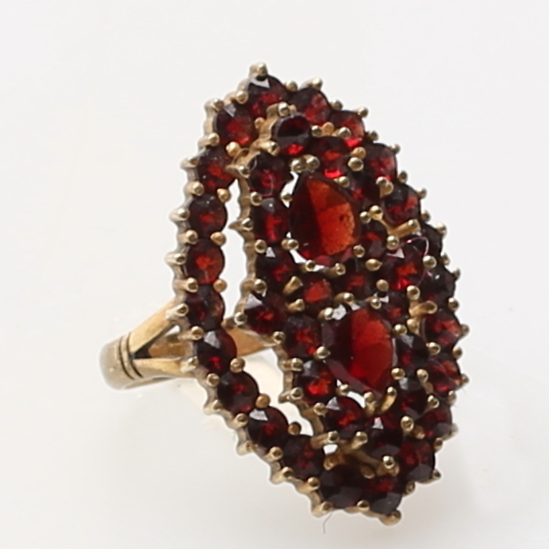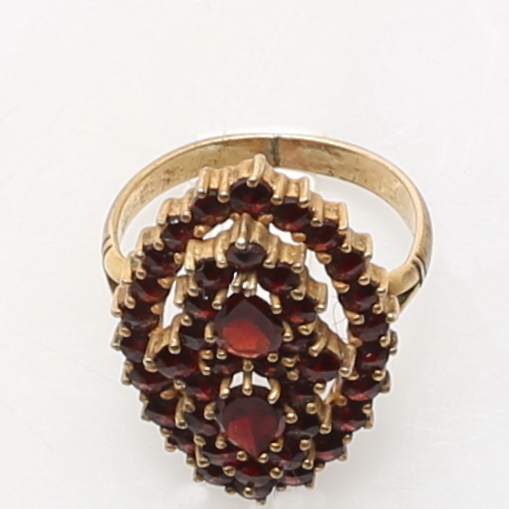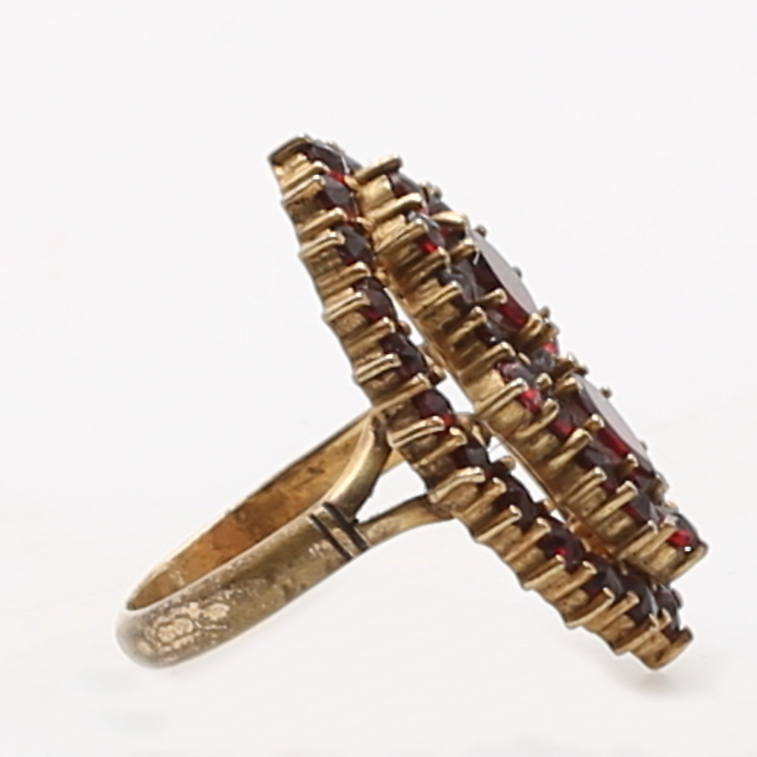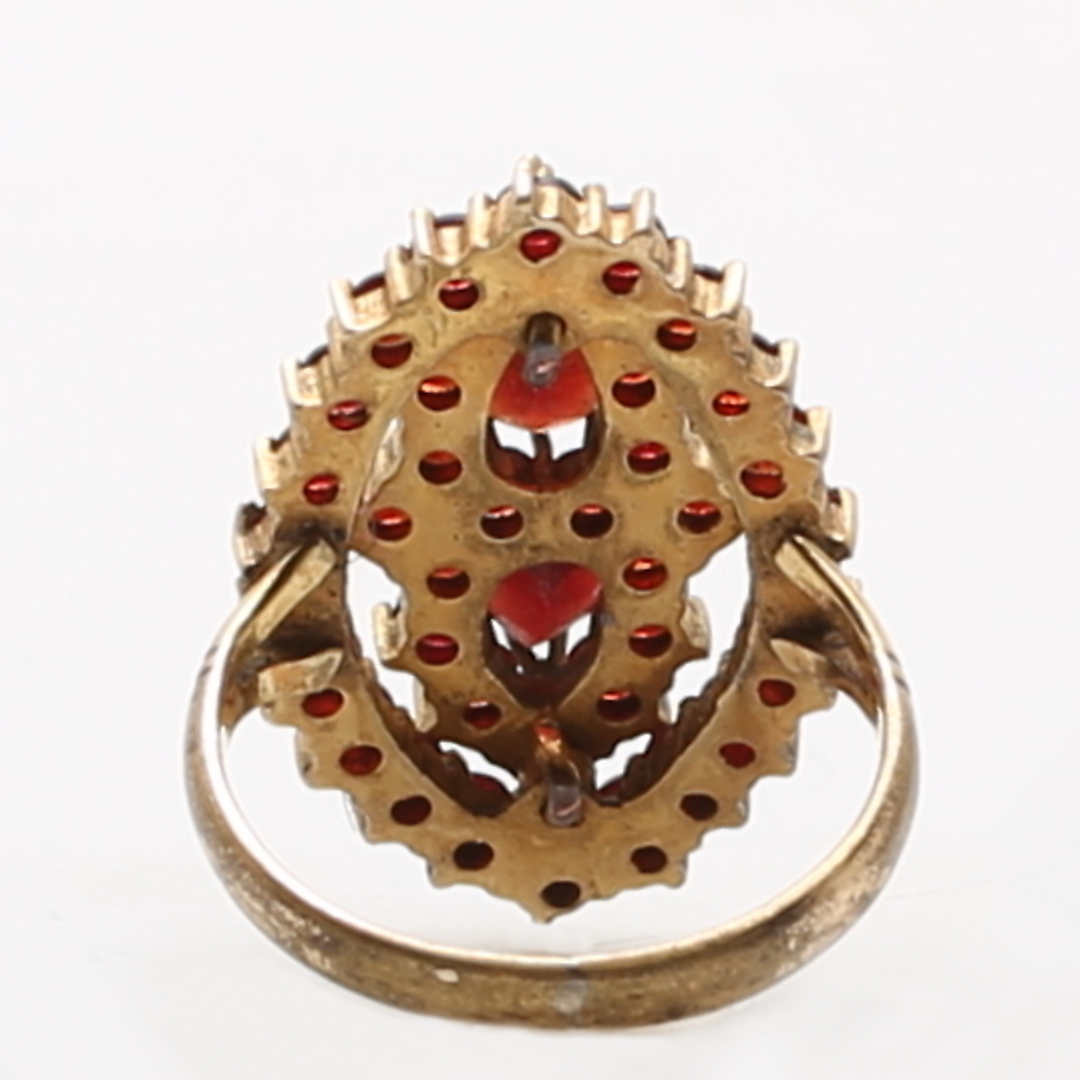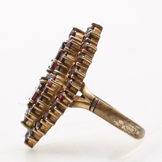 380071. RING, forgyldt sølv, granater, totalvægt 3,2 gram.