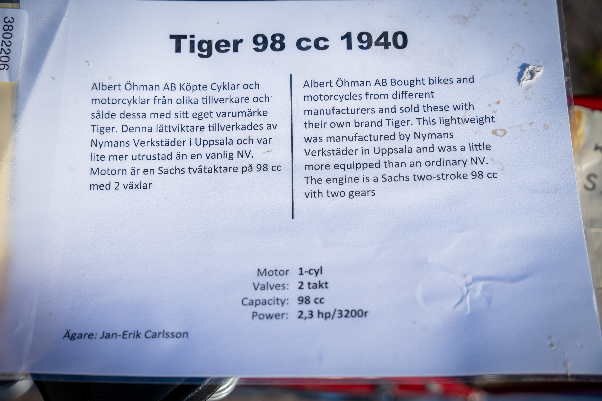 3802206. TIGER, Albert Öhman AB, 1940.