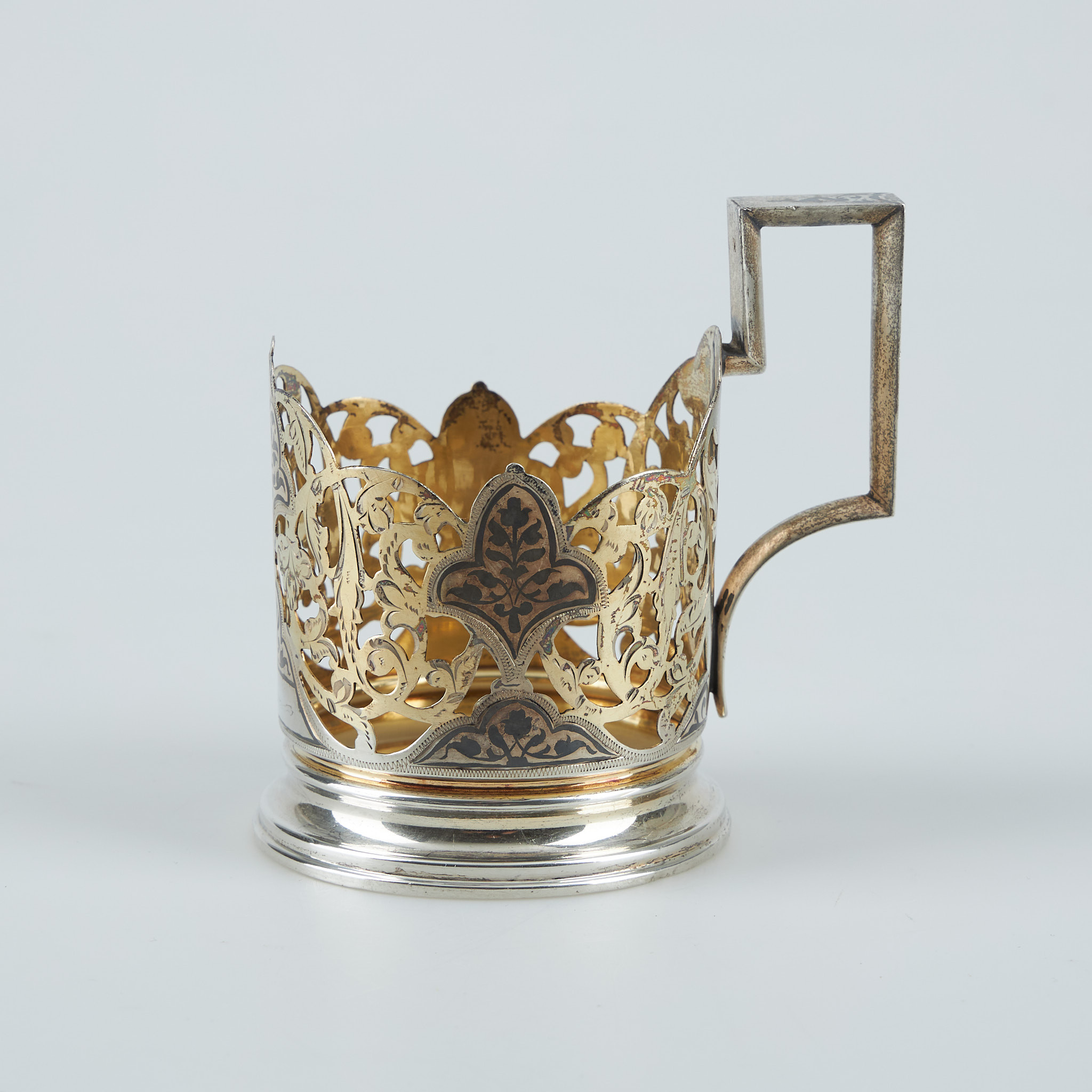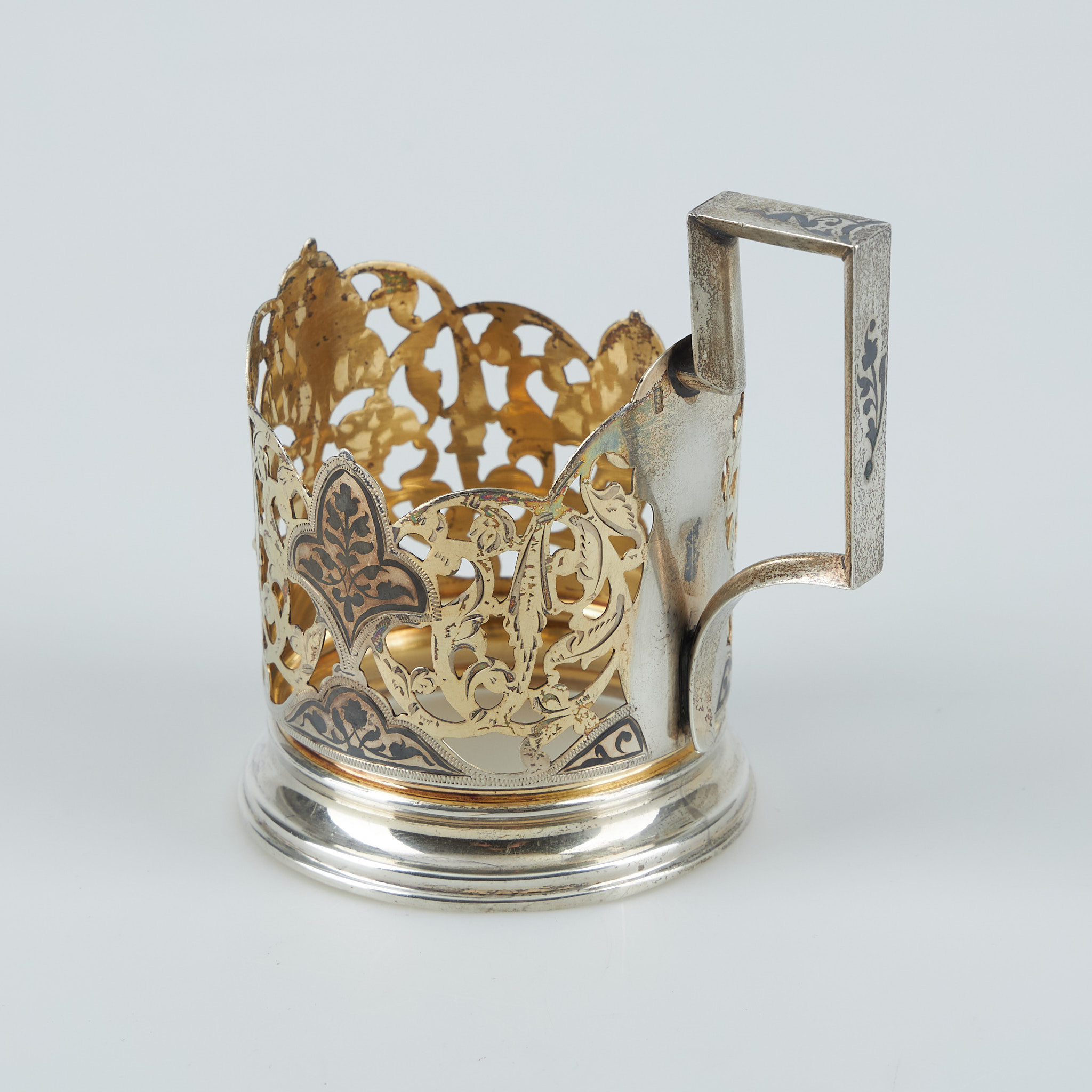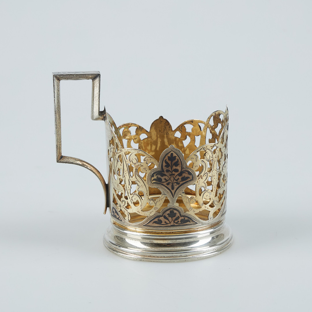 3806108. TEGLASHOLDER, sølv, niello, Sovjetunionen.