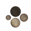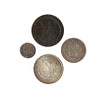 George III Halv krone sammen med Cartwheel penny, 1896 amerikanske dollar og en Louis XIV 1 ⁄12 ecu med ungdomshullet buste (4).
