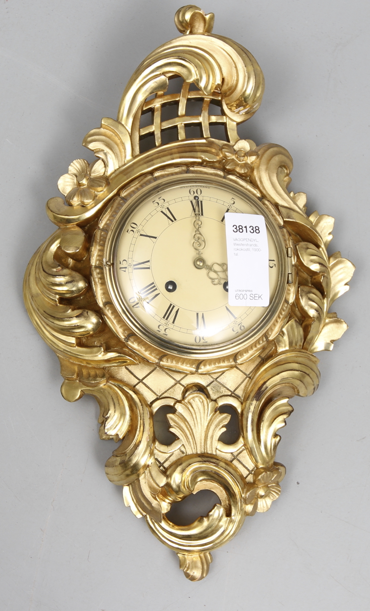 38138. VÆGPENDUL, Westerstrands, rokokostil, 20. århundrede.