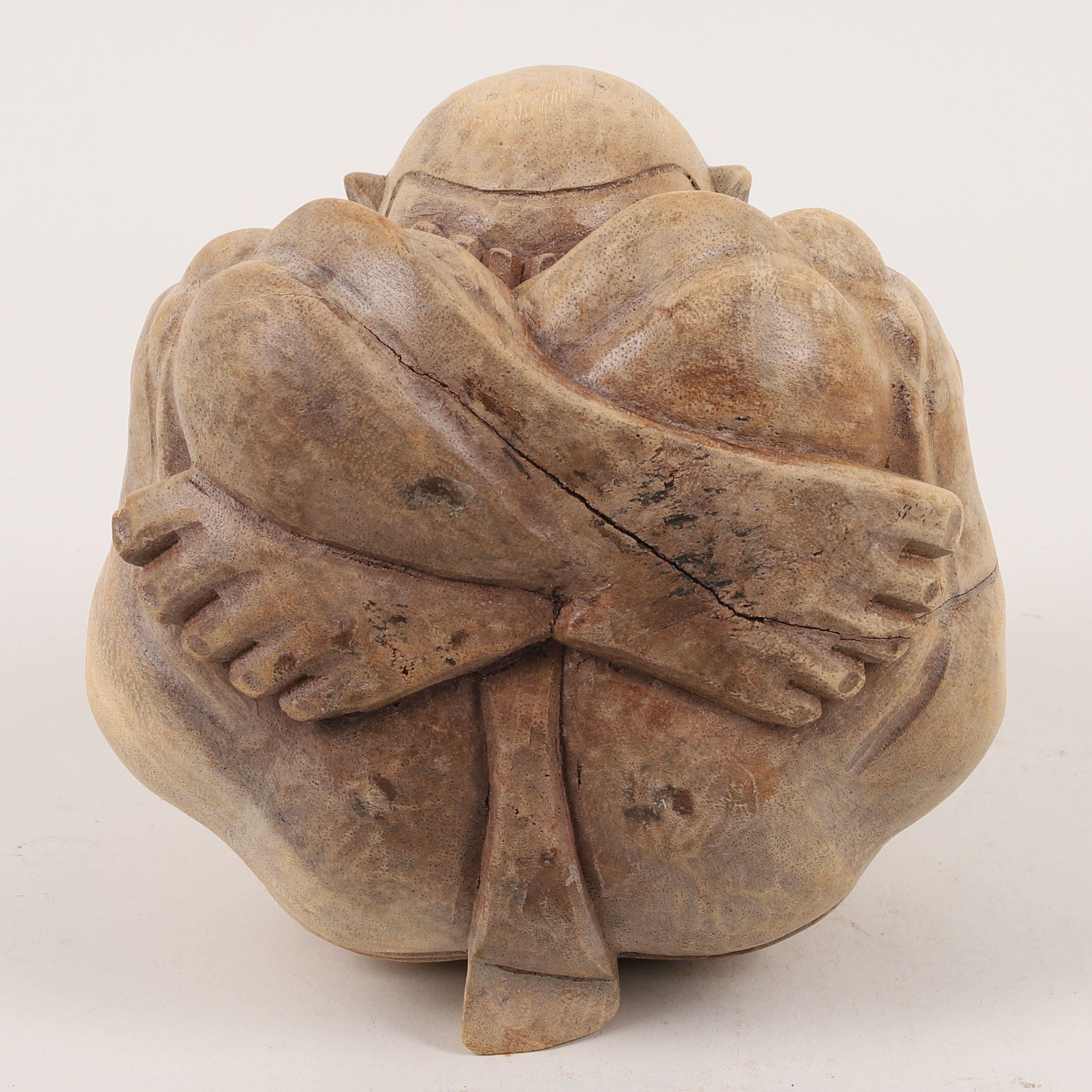 3816799. EN TRÆSKULPTUR, Grædende Buddha.