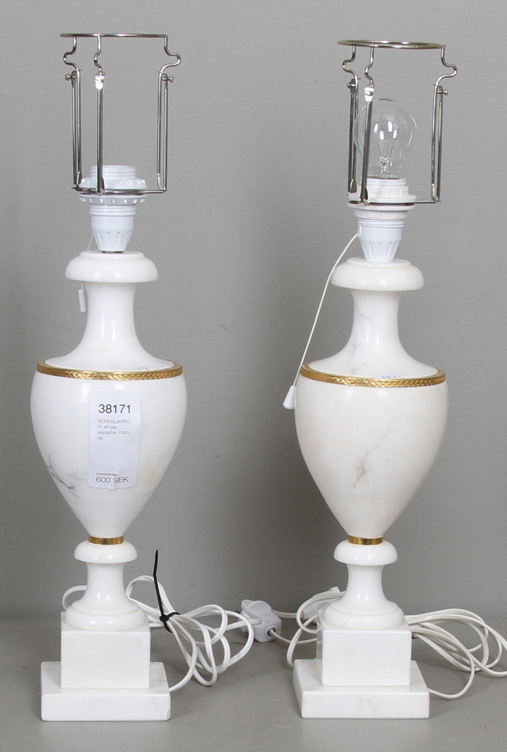 38171. BORDLAMPER, et par, alabast, 20. århundrede.