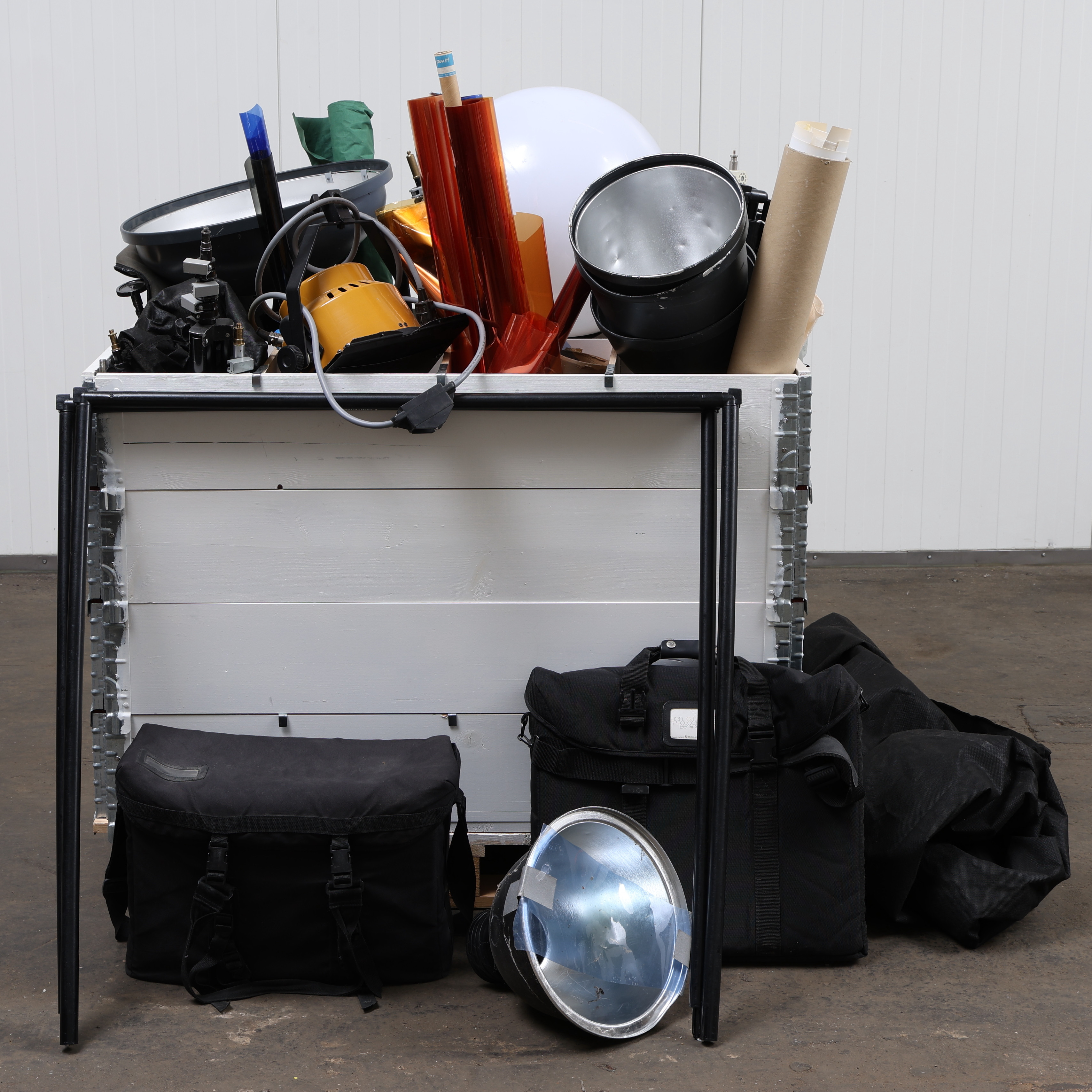 3817118. STUDIEUDSTYR, større parti, inkl. stativ til studielys.