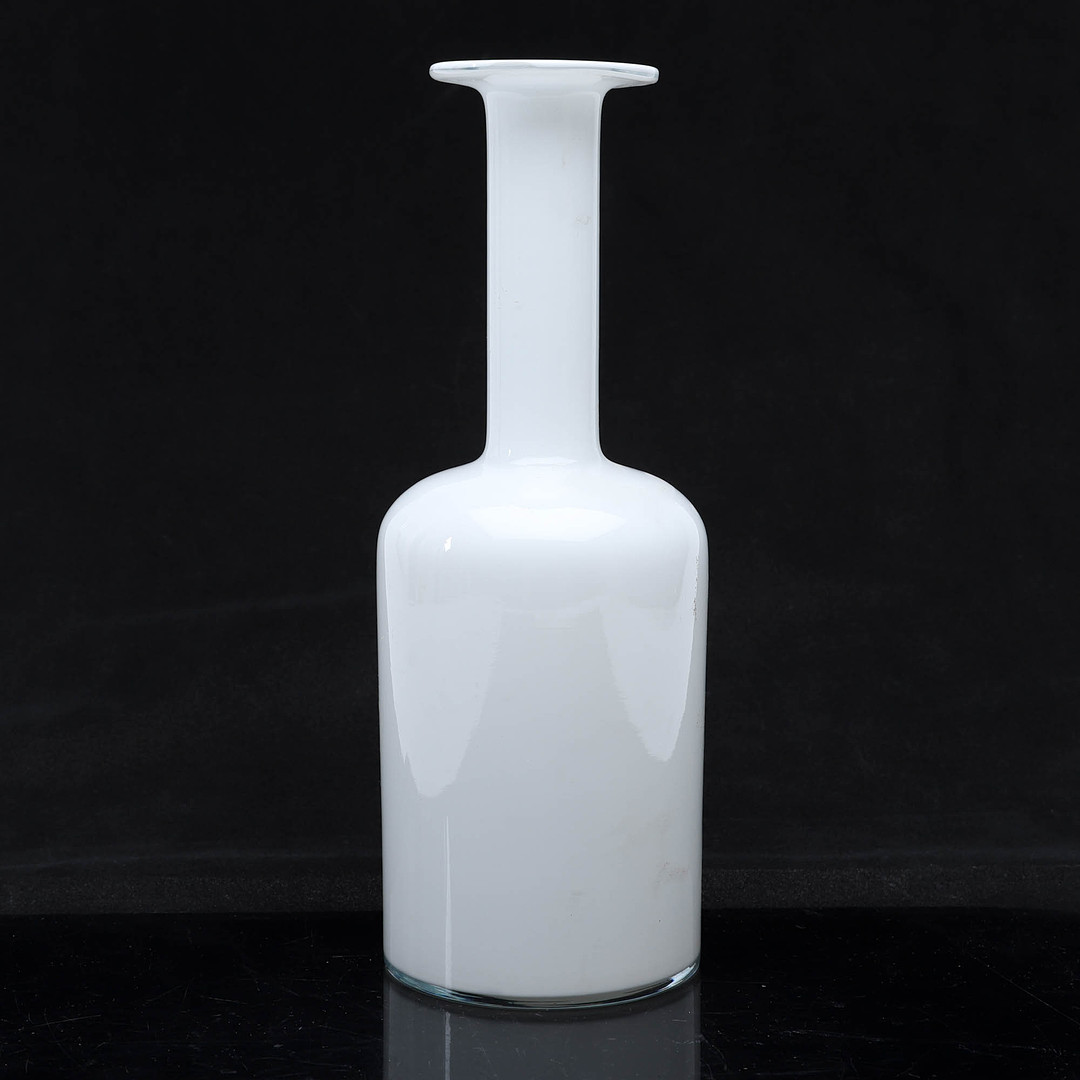 3820795. Vase af glas, hvid. Otto Brauer. Holmegaard.