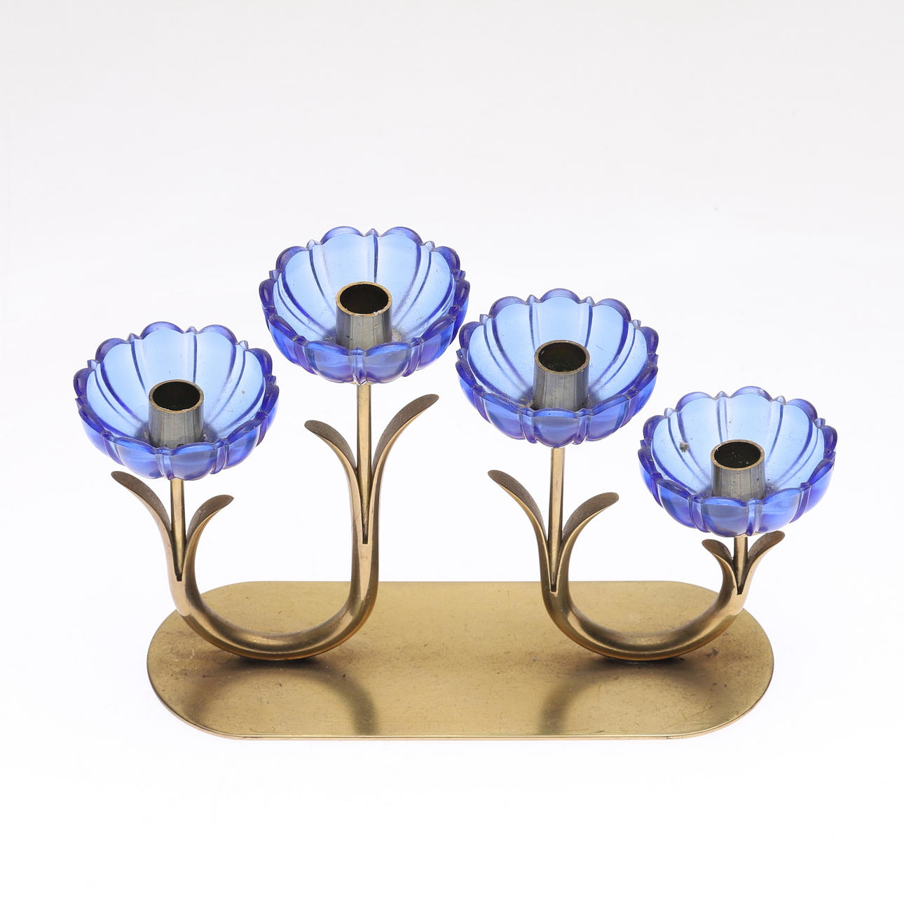 3821674. GUNNAR ANDER. lysestage, messing/glas, Ystad Metall.