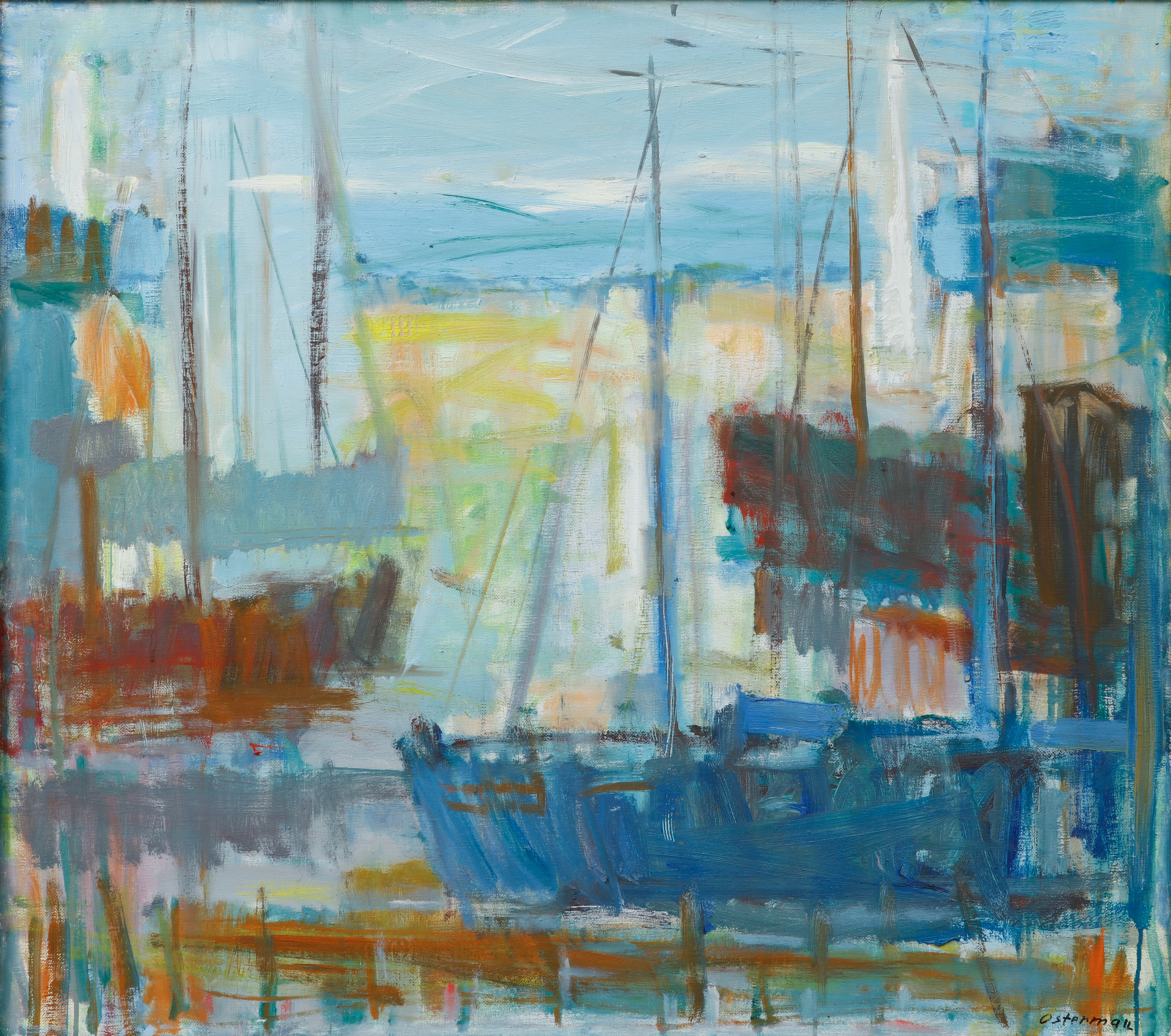 3822685. ELVINE OSTERMAN. „Både“, olie på lærred, signeret.