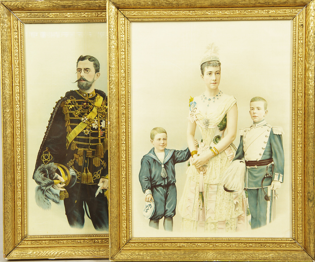 382481. PORTRÆT AF KONGEN, 2 tryk i forgyldte rammer.