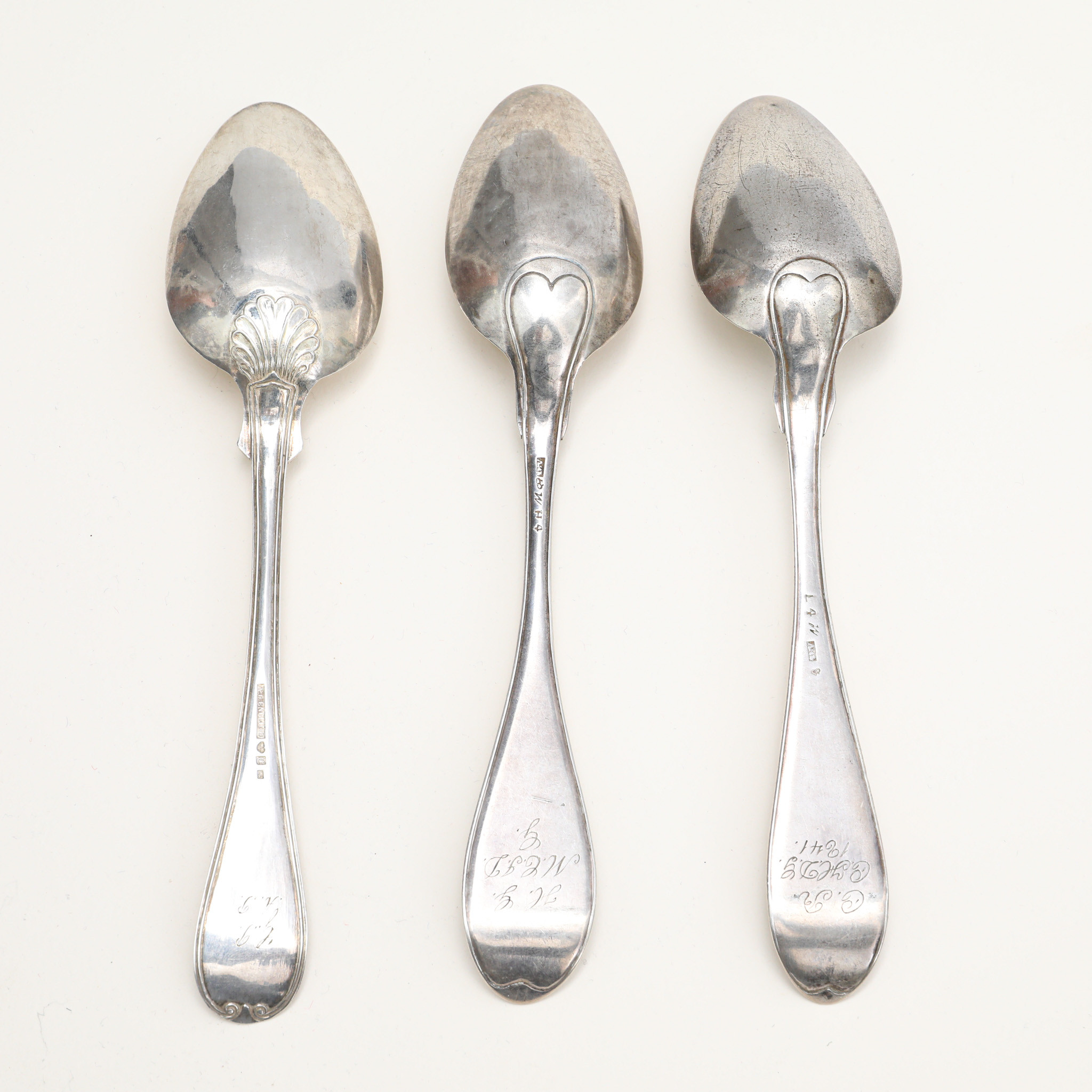3827151. SØLVSKEER, 3 stk., 19. årh., indgraveret.