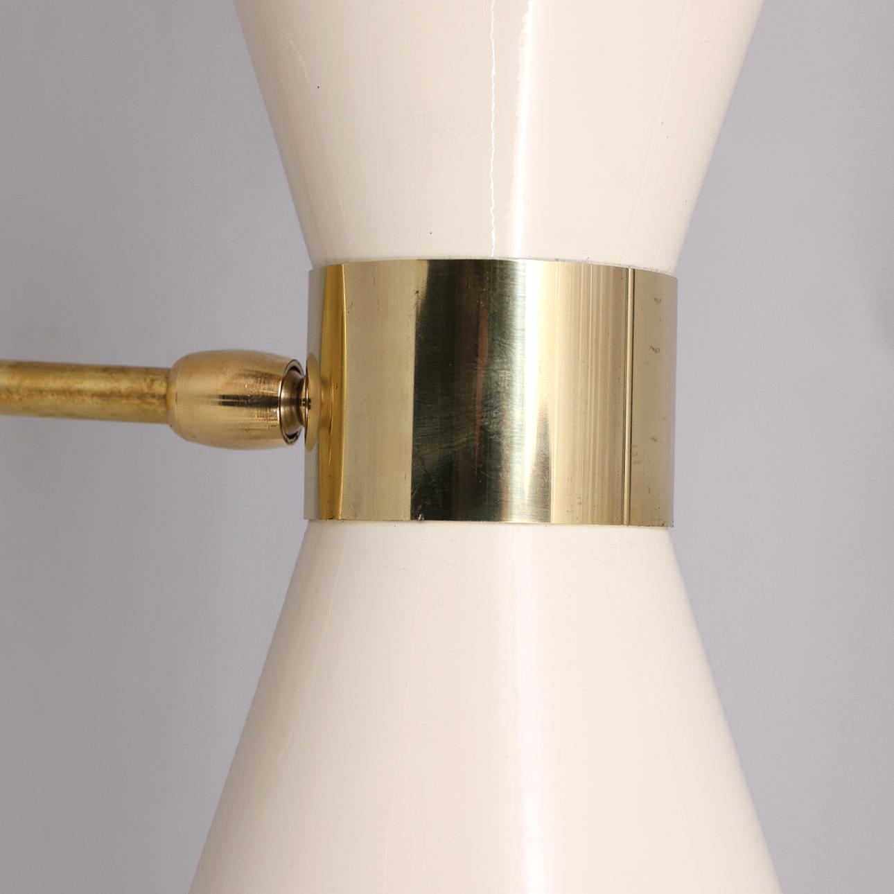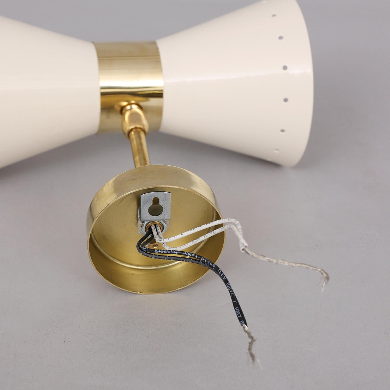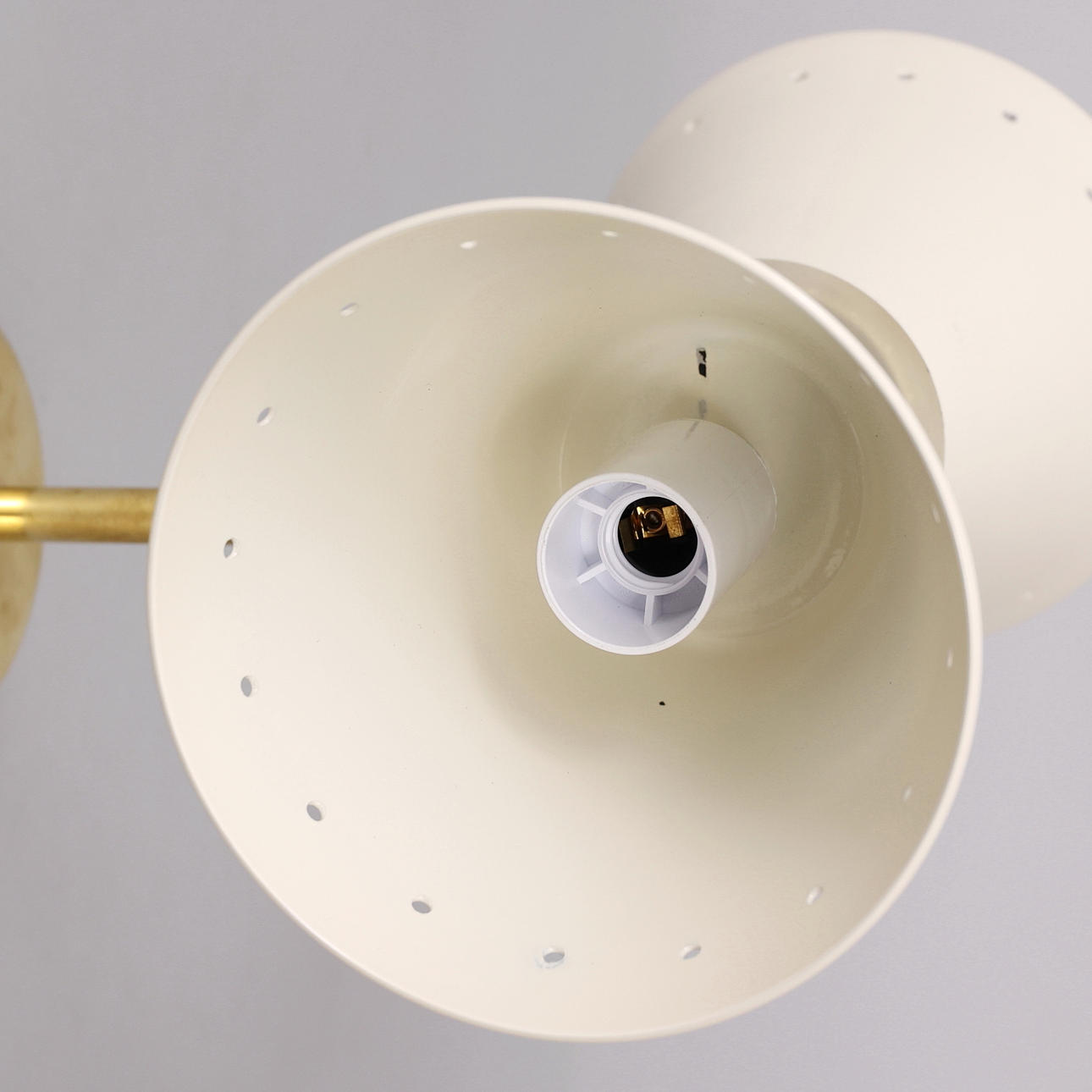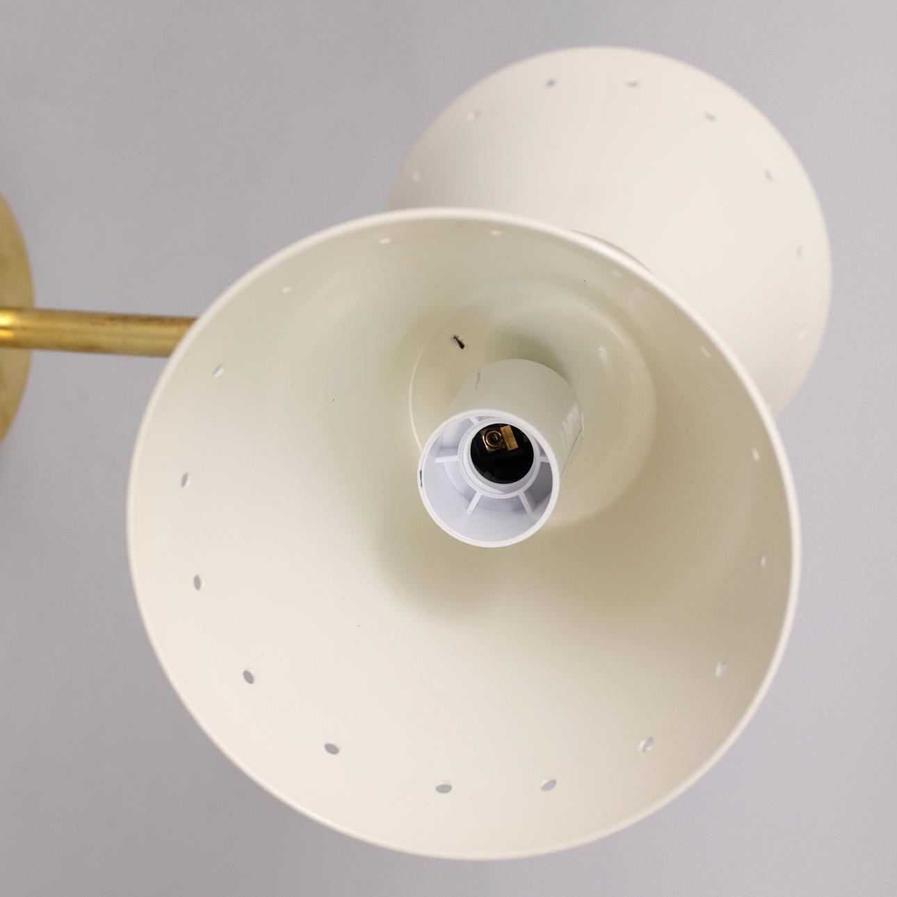 Ramme i patineret messing, skærme i lakeret og emaljeret metal, 2 lyspunkter, E14