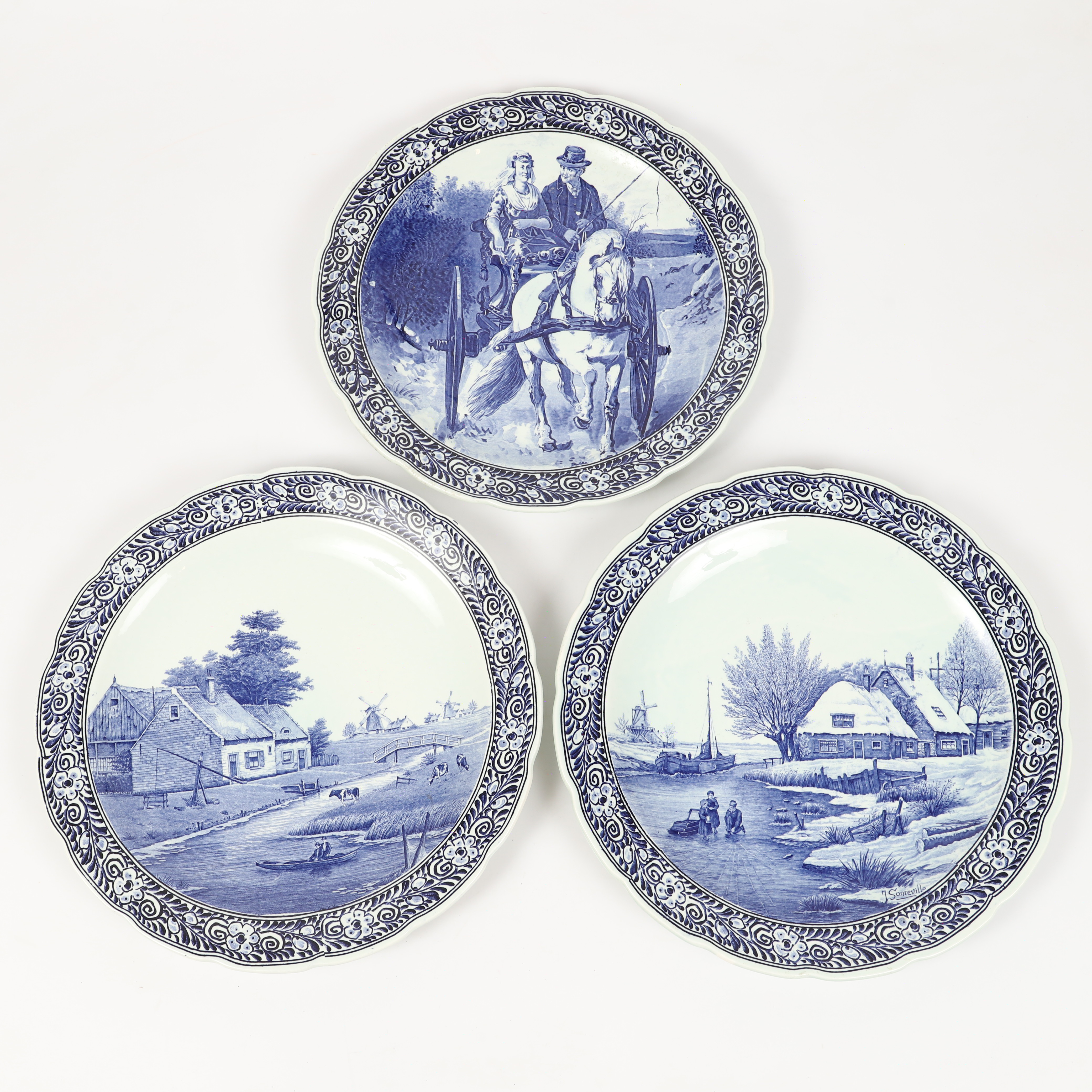 3835135. PRAKTPLATTER, 3 stk., Porcelæn, Delft.