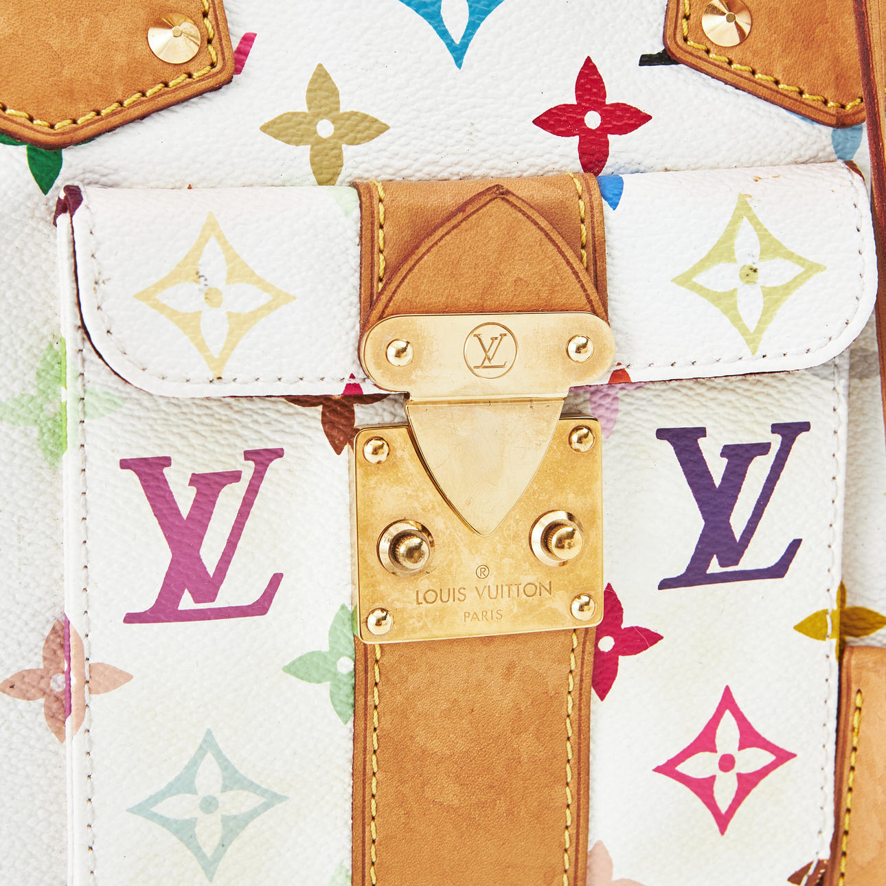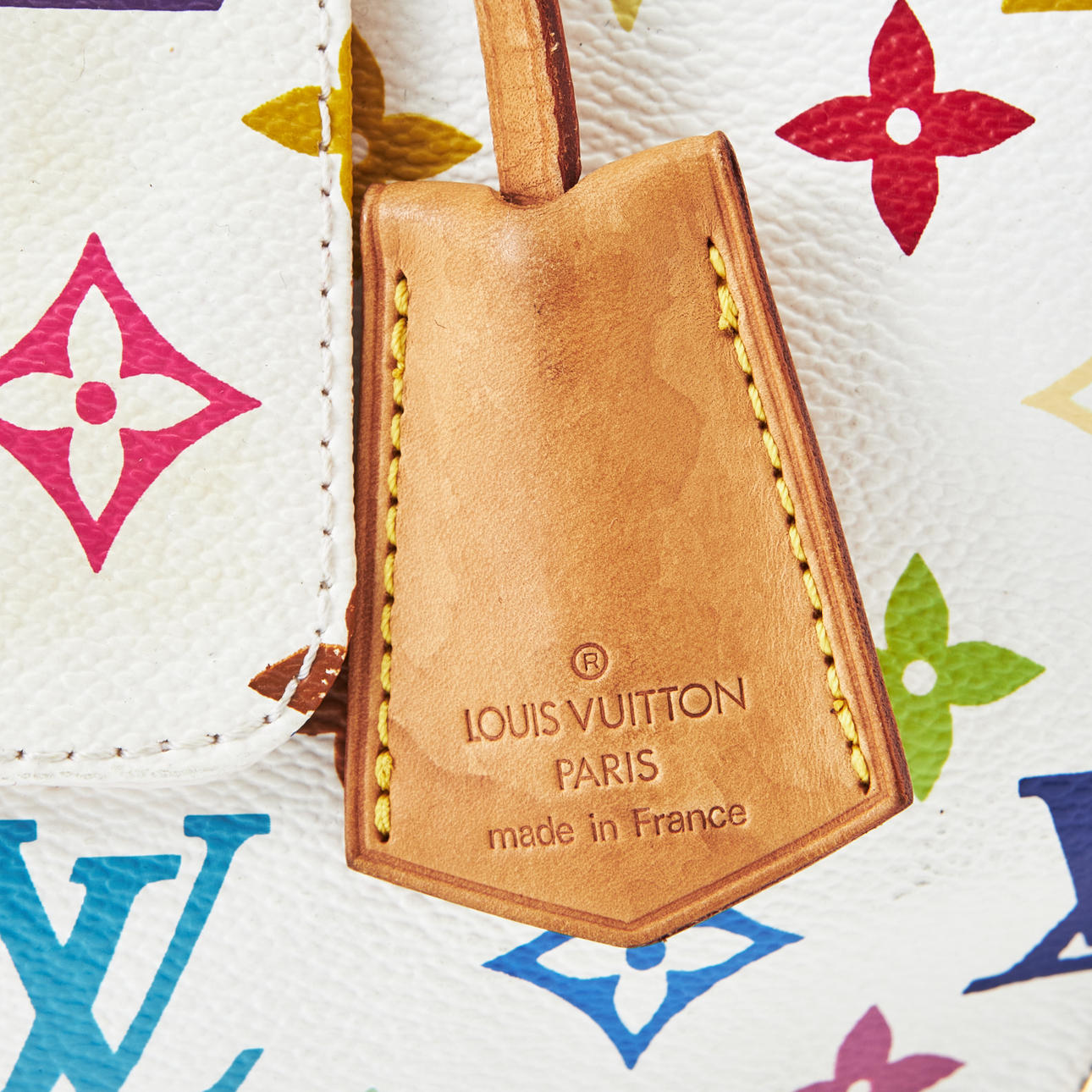 Flerfarvet monogram i hvidt med vachetta læder og hardware i messing. Foret med bordeaux stof, et stort rum samt et lille siderum. Mærket „LOUIS VUITTON PARIS made in france“ og med datakode SP0063 (Frankrig 2003). 30 x 20 x 18 cm. Med nøgle.