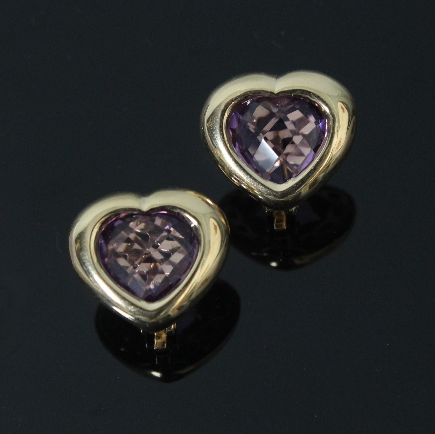 3837618. Hjerteslirede øreringe med ametyster, 585.