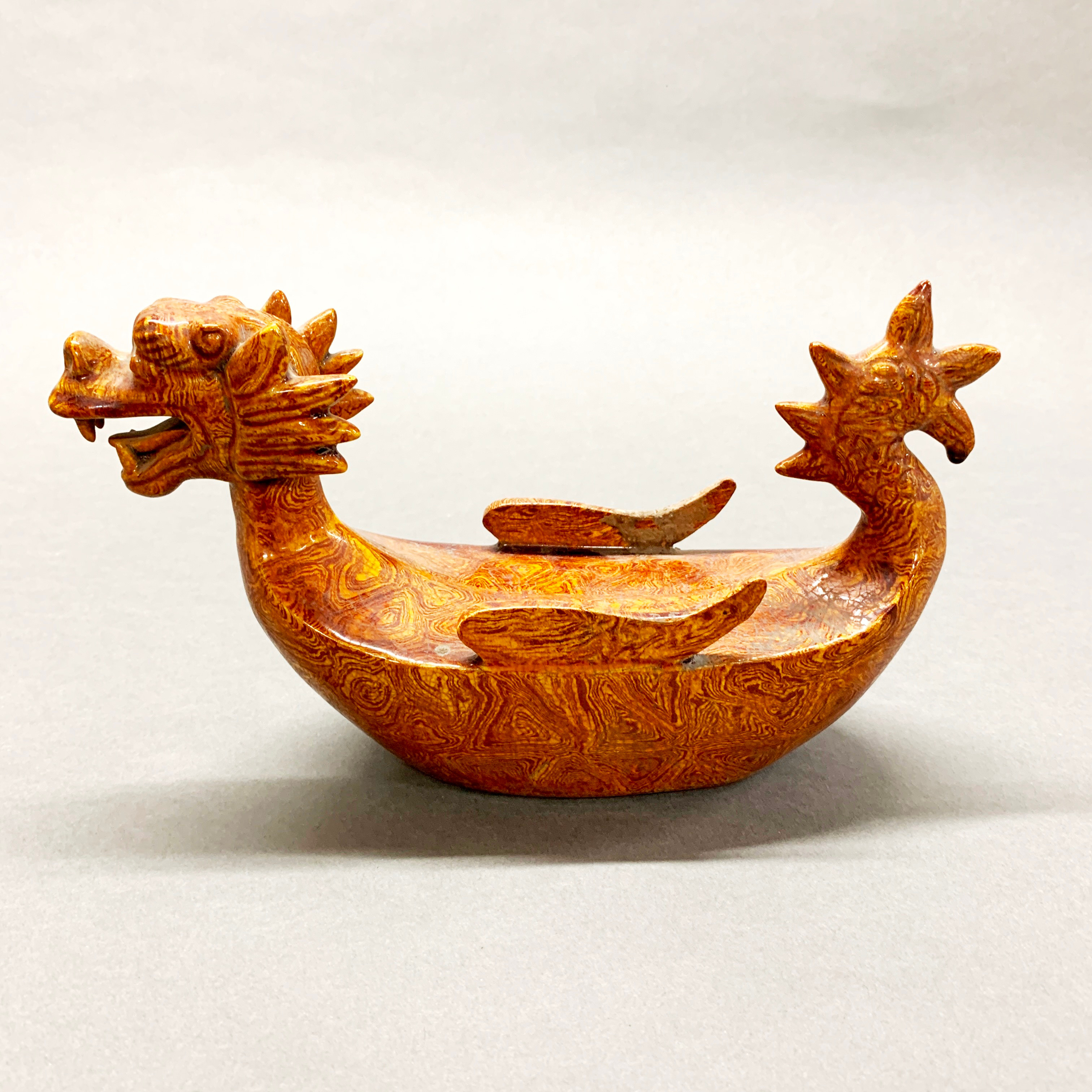 3841583. KINESISK MARMORERET GLASUR KERAMIK DRAGEBÅD.