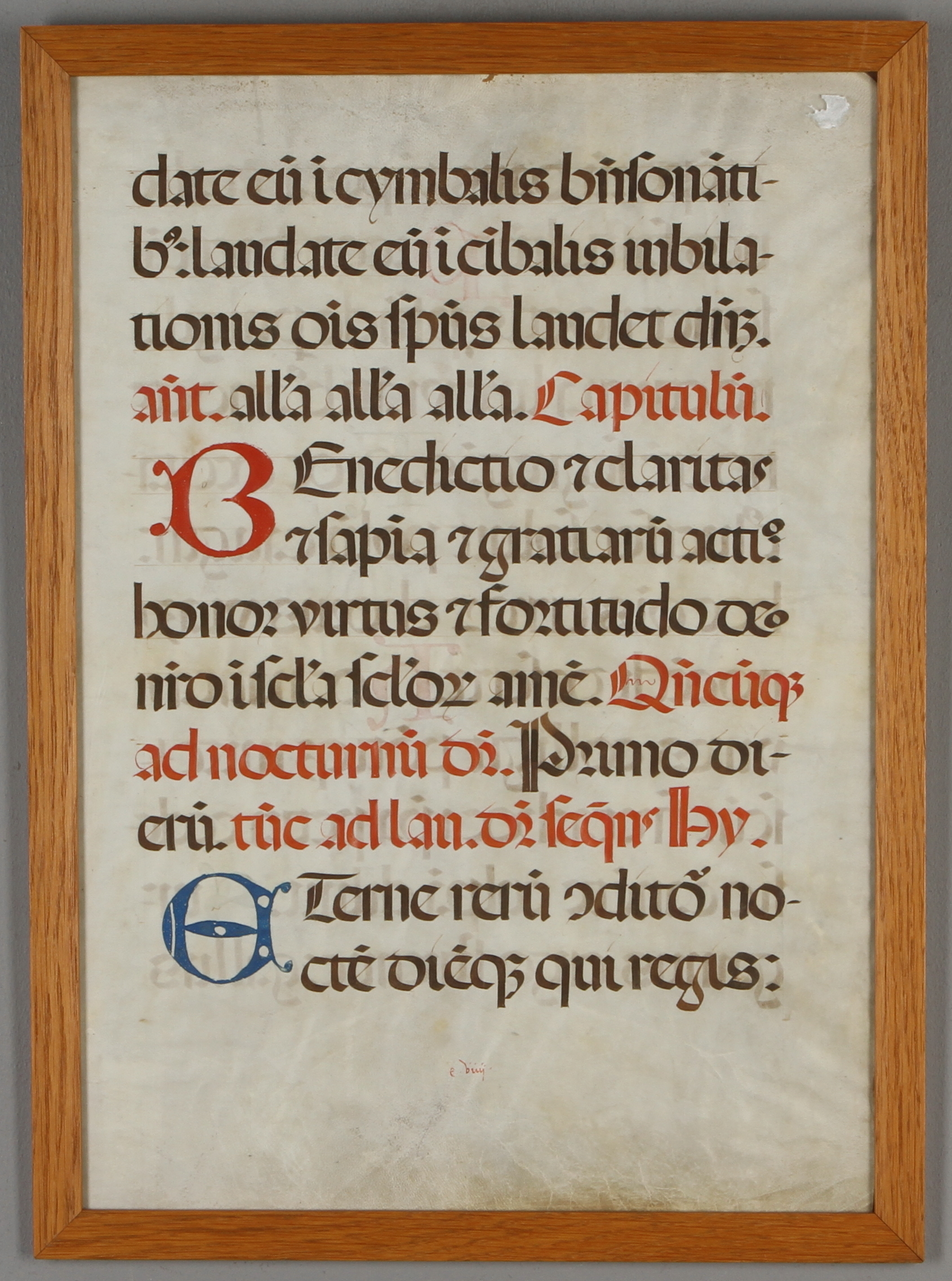 38416. HÅNDSKRIFT, på pergament, dobbeltramme.